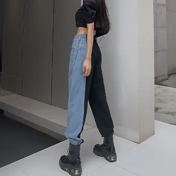 WITHZZ אביב סתיו רחב רגל ג 'ינס נשים גבוהה מותן ינס מכנסיים רטרו נבילה רופפת ישר מכנסיים ג' ינס