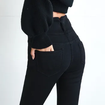 חדש גבוהה מותן קטיפה עבה ג 'ינס נשי חורף סקיני למתוח חם ג' ינס מכנסיים אמא שחור ג 'ינס מכנסיים עם צמר מכנסיים p125