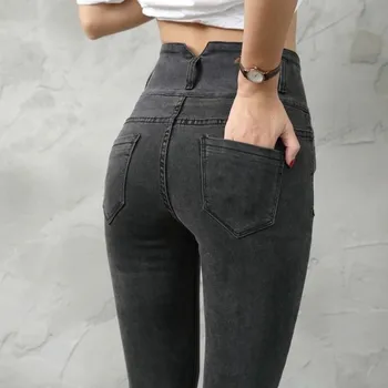 קוריאני אופנה אישה ג 'ינס רופף מזדמן ישר רגל Highwaist ג' ינס נקבה Streetwear אביב ובסתיו מכנסיים