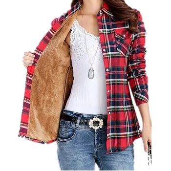 קטיפה עבה חם נשים של חולצה משובצת נשי ארוך שרוול חולצות M-XXL חורף צמר מזדמן לבדוק חולצה סתיו בגדי T77710A