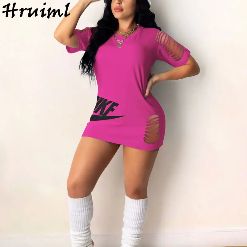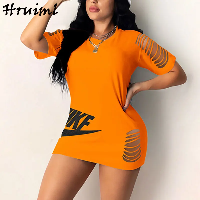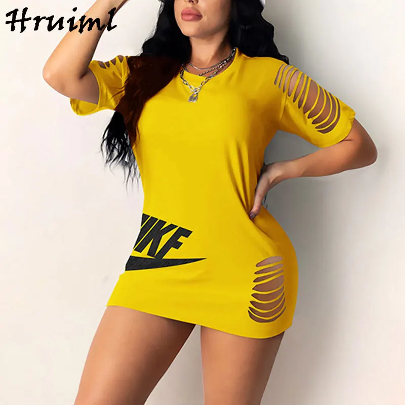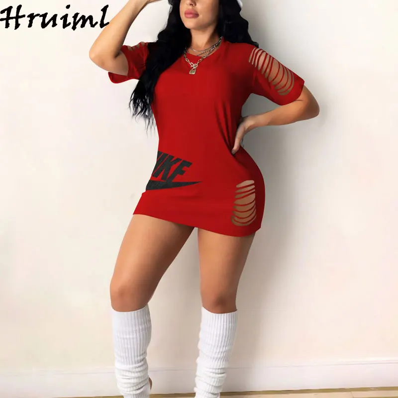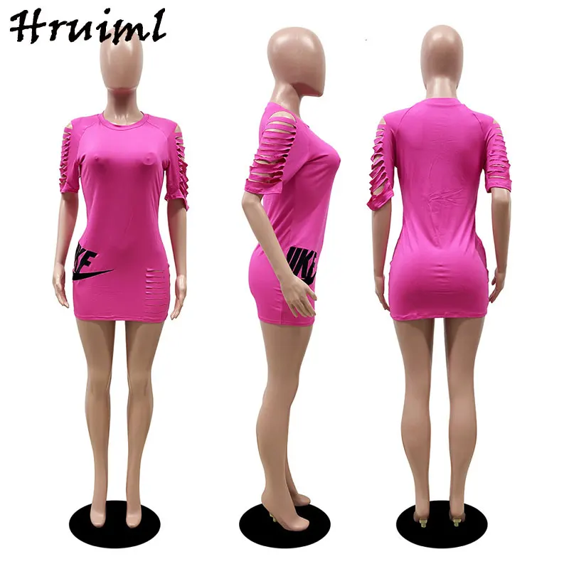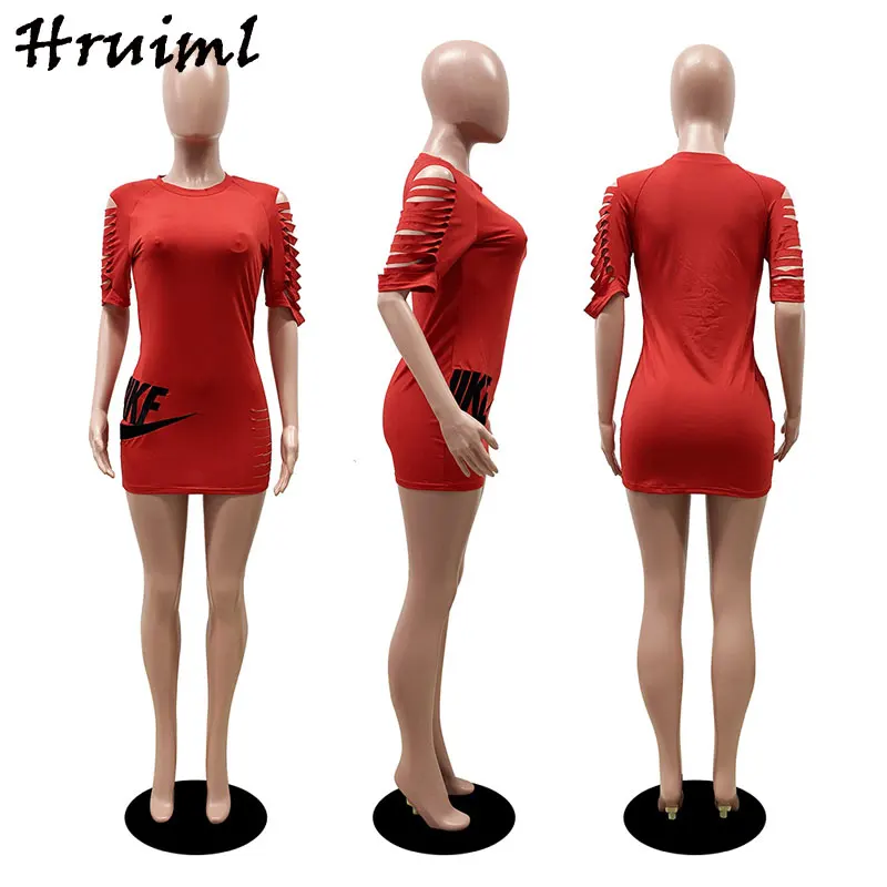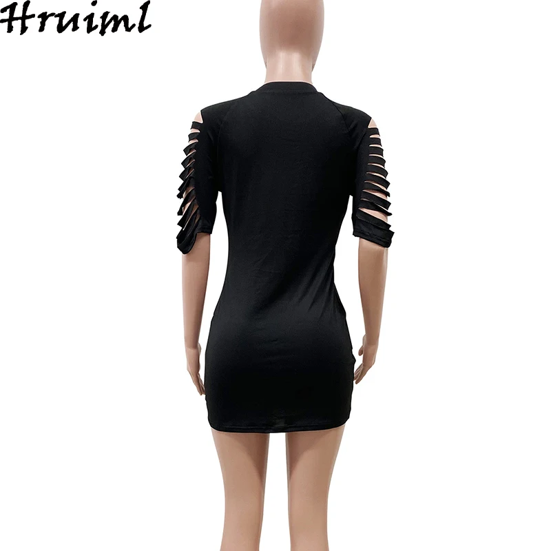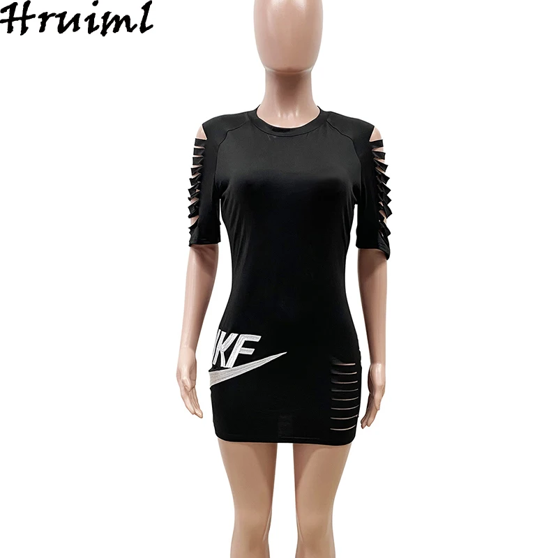 שחור שמלת נשים קיץ חצי שרוול O-צוואר חור מכתב הדפסת אופנה בתוספת גודל שמלת ערב המפלגה סקסי שמלת נקבה מיני