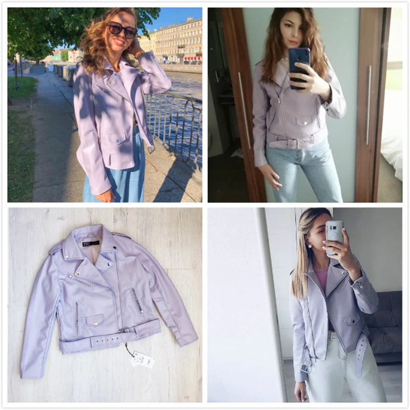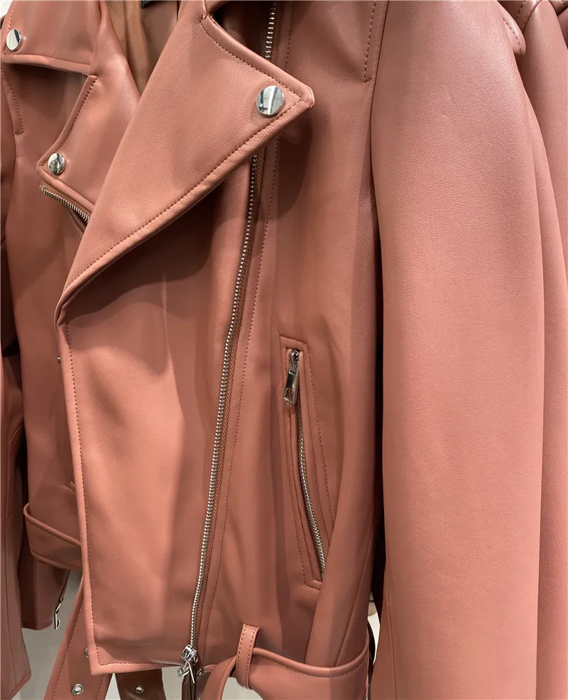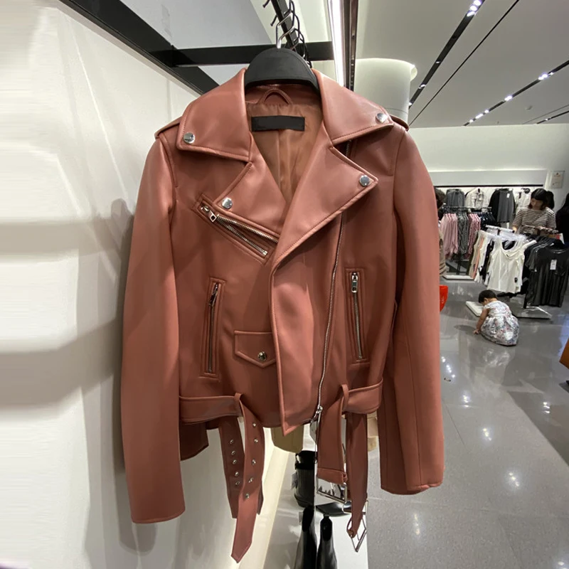 -2020 אביב סתיו עם Sashes Pu דמוי עור מעיל נשים לבן שחור רוכסן Slim קצר Biker מעילי מעיל נשי להאריך ימים יותר חולצות