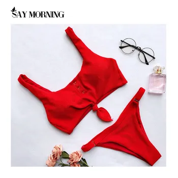 אומר בוקר חדש הגעה סוד כפתור סקסי מוצק ביקיני לדחוף את בגדי ים מוצק ביקיני סט רחצה חליפות חוף ללבוש שחייה חליפה