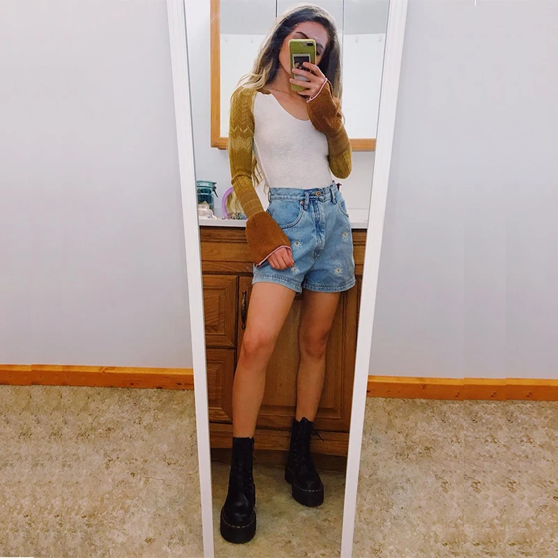 דייזי רקום מכנסיים קצרים