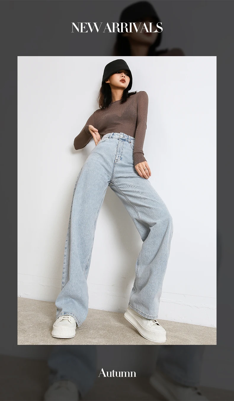 ●Features: כפתור, כיס, רוכסן, ג 'ינס, גבוה מותן, רחב רגל, אופנתי