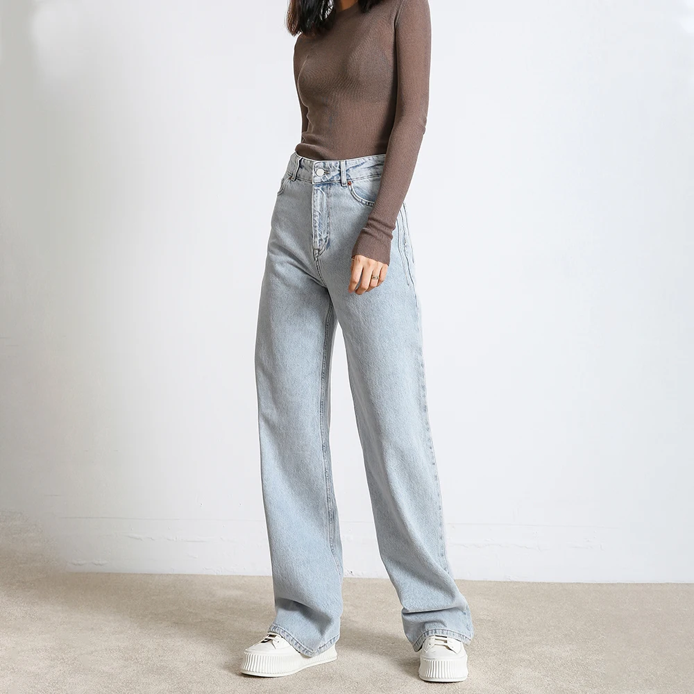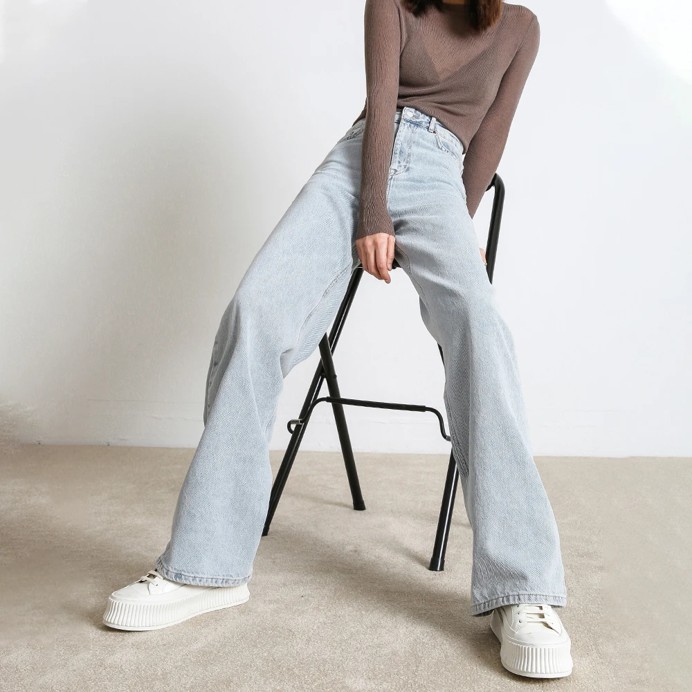 ●Solid גבוהה מותניים רחב רגל ג 'ינס