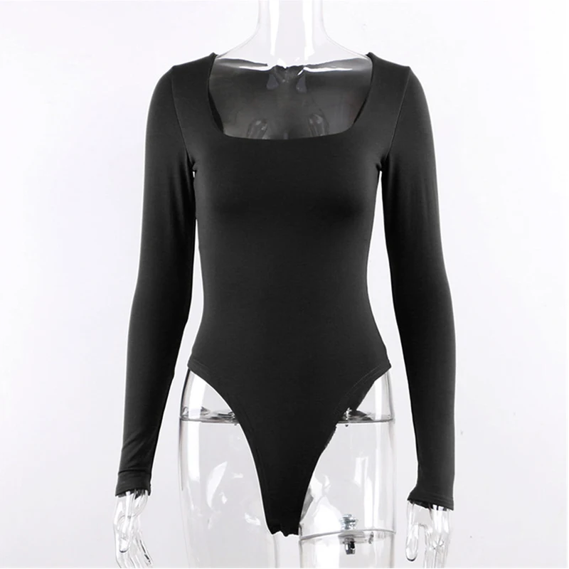 בגד גוף ארוך שרוול נשים גוף streetwear dropshipping Forefair סקסי Bodycon כיכר צוואר נדן מפשעה בסיסי שחור סרבל למעלה