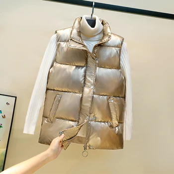 בתוספת גודל נשים סתיו חזייה מבריק בהיר 2020 אפוד החורף חם חדש קוריאני למטה אפוד שרוולים מעיל 3XL,4XL, שחור, כחול