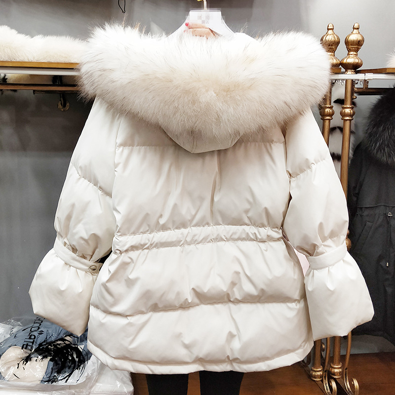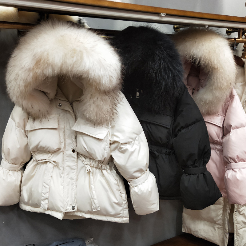 גדול טבעי דביבון פרווה סלעית חורף מעיל נשים 90% לבן ברווז למטה מעילים עבה חם מעיילי אבנט לקשור הקצר שלג מעיל
