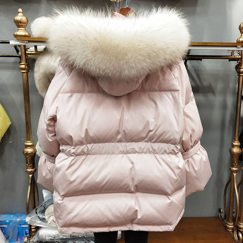 גדול טבעי דביבון פרווה סלעית חורף מעיל נשים 90% לבן ברווז למטה מעילים עבה חם מעיילי אבנט לקשור הקצר שלג מעיל