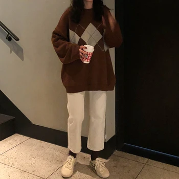 דגם גיאומטרי אופנה בסיסית להיט מזדמן רגיל 2019 נשי נשים ארוך שרוול כל התאמה מכללת רוח להיט מכירה לוהטת סוודרים