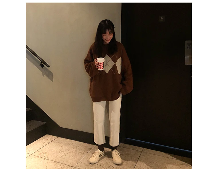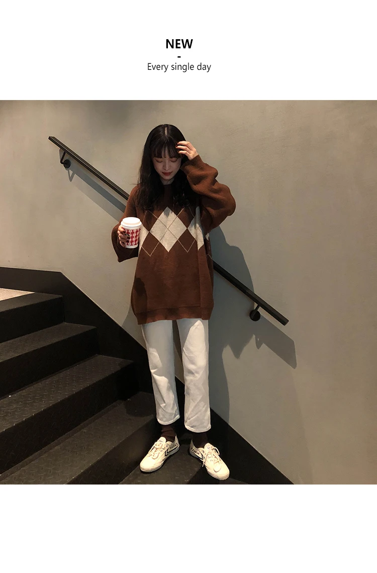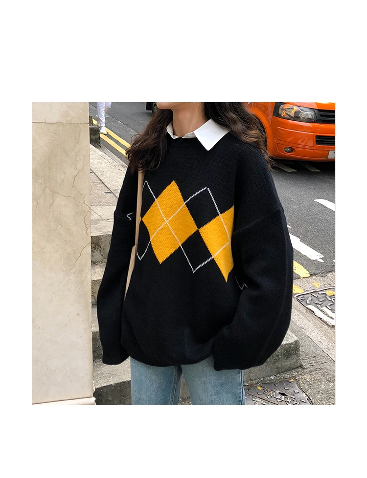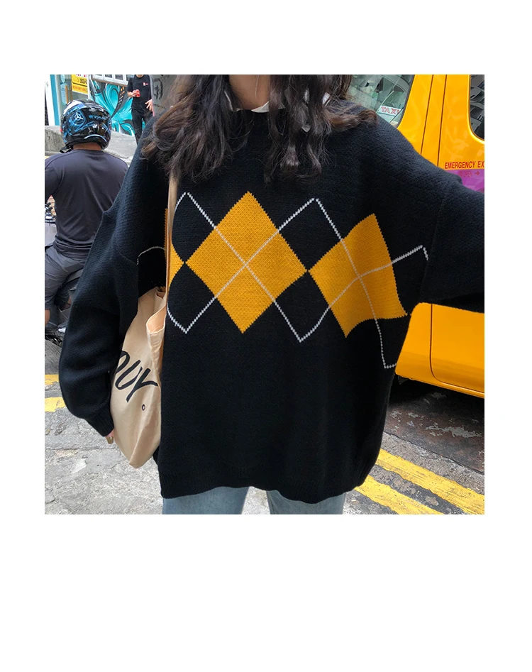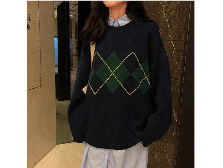 דגם גיאומטרי אופנה בסיסית להיט מזדמן רגיל 2019 נשי נשים ארוך שרוול כל התאמה מכללת רוח להיט מכירה לוהטת סוודרים
