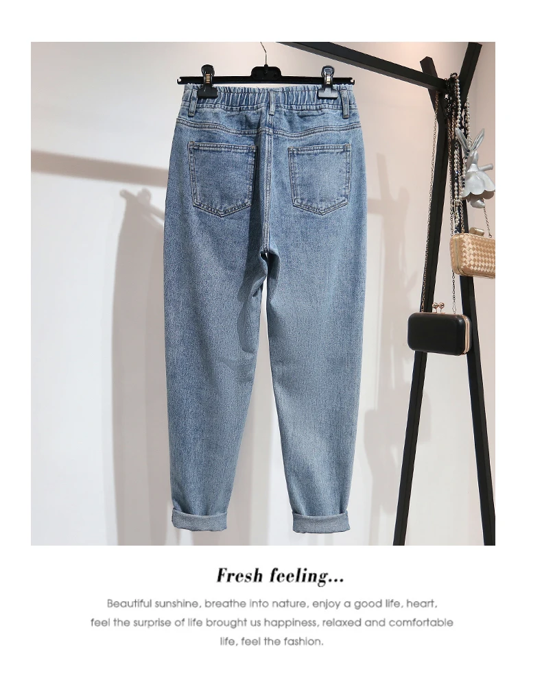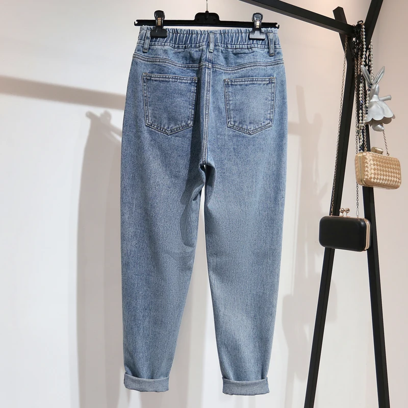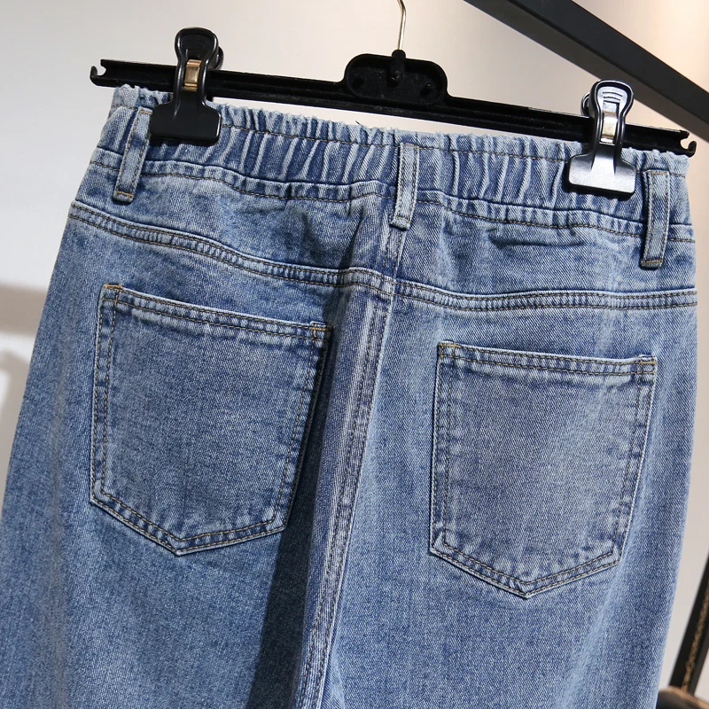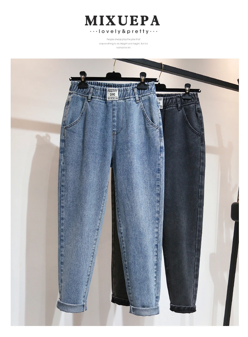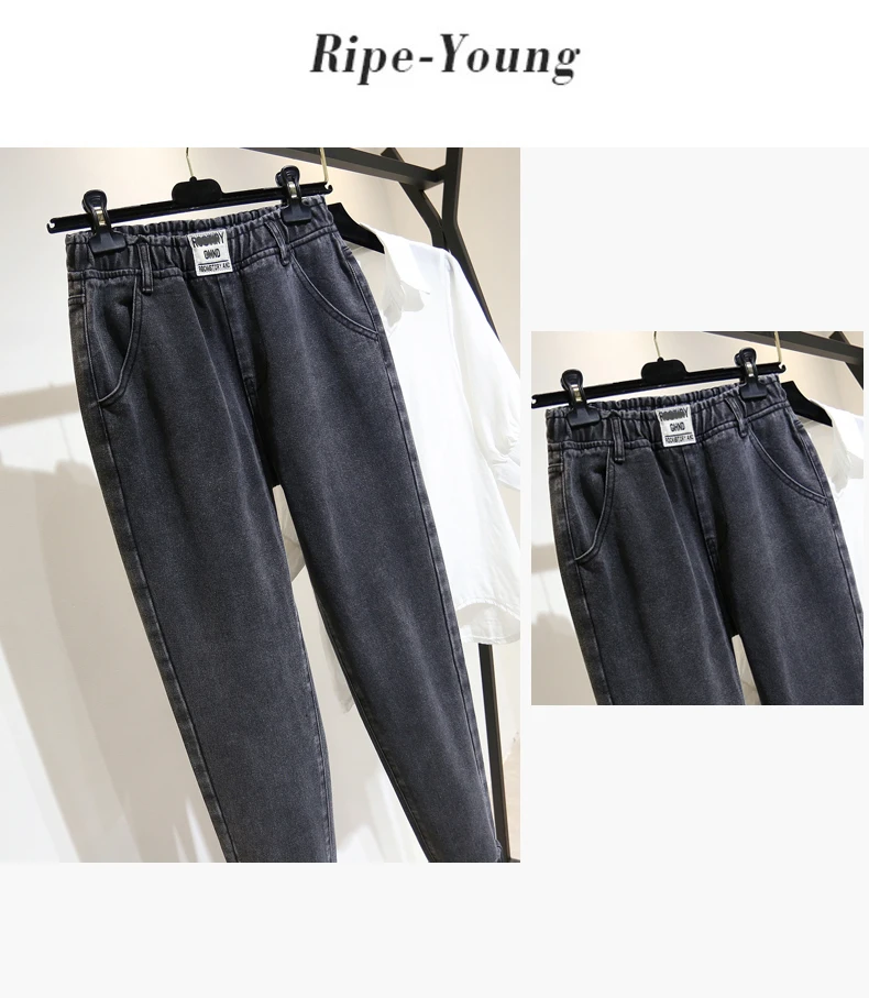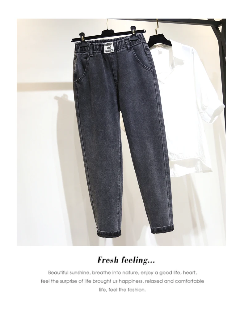החבר ג 'ינס לנשים גבוהה מותן בתוספת גודל מרכך מלא אורך ג' ינס הרמון מכנסיים רטרו כחול אפור 4xl 5xl