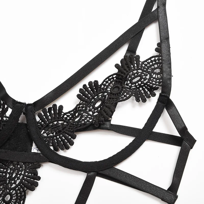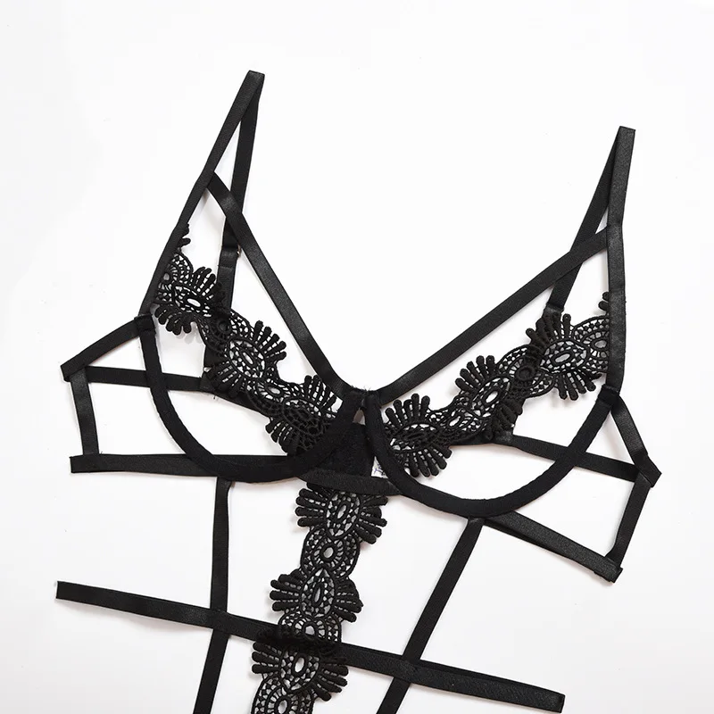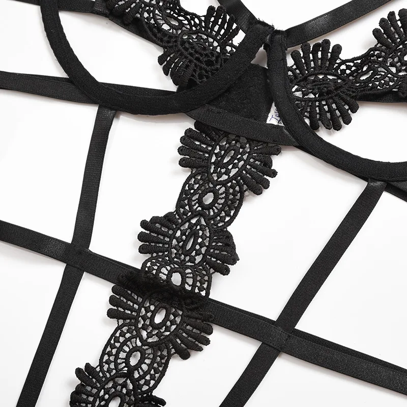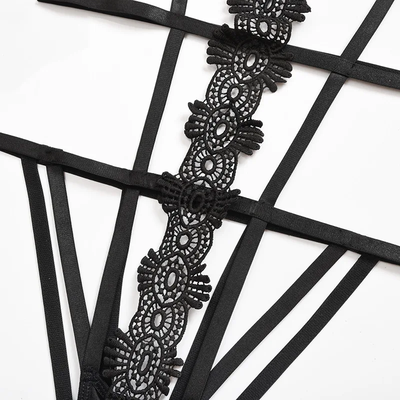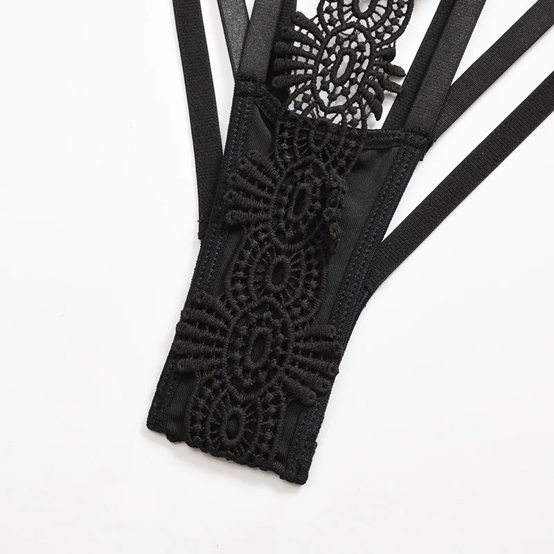 הצפנה שחור חם סקסי רצועות Bodysuits מסיבת מועדון נשי גוף פרחוני תחבושת שרוולים ללא משענת בגד גוף חוטיני Slim