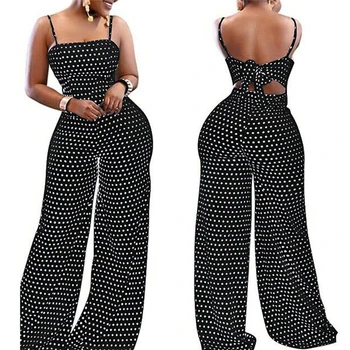 חדש הגעה נשים של רצועת שרוולים סרבל מנוקדת רחב רגל Romper גבירותיי מקרית Slim Playsuit חג מסיבת ללבוש קיץ