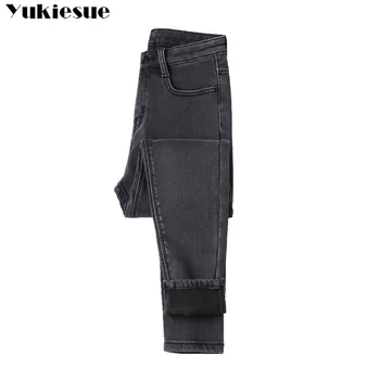 חורף חם ג 'ינס אישה 2020 גבוהה מותן מקרית קטיפה גבירותיי מכנסיים נקבה Pantalon ג' ינס ג 'ינס לנשים מכנסיים בתוספת גודל 40