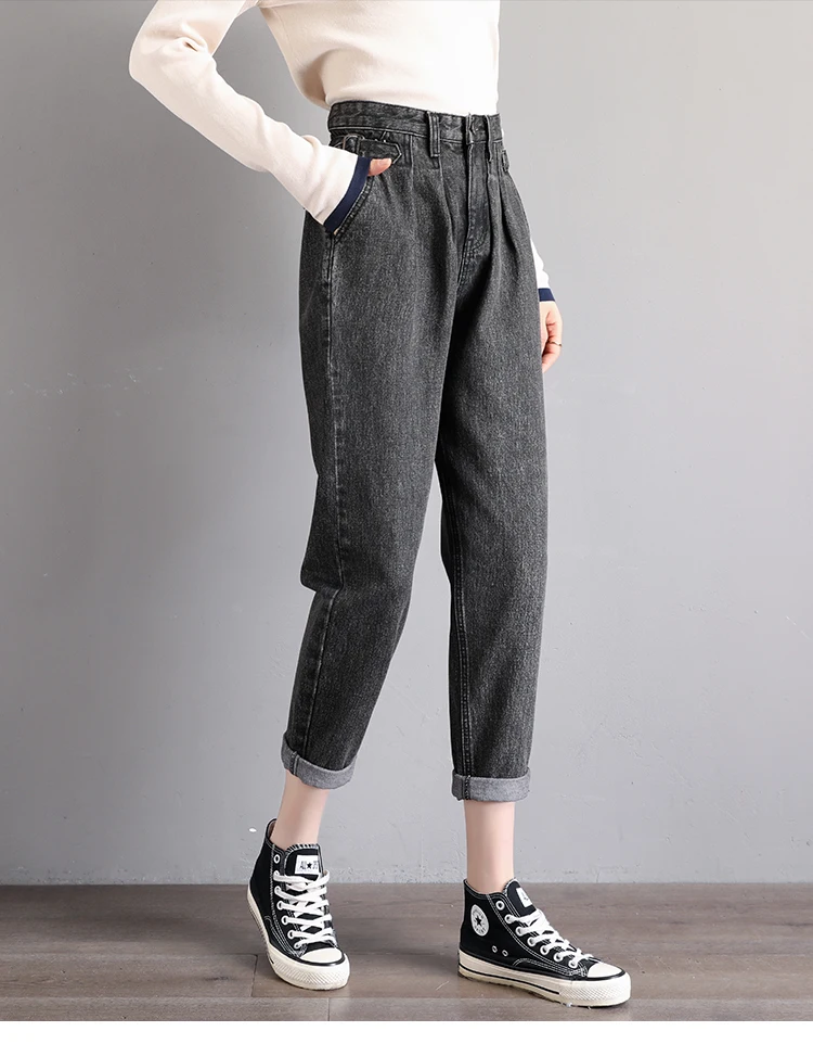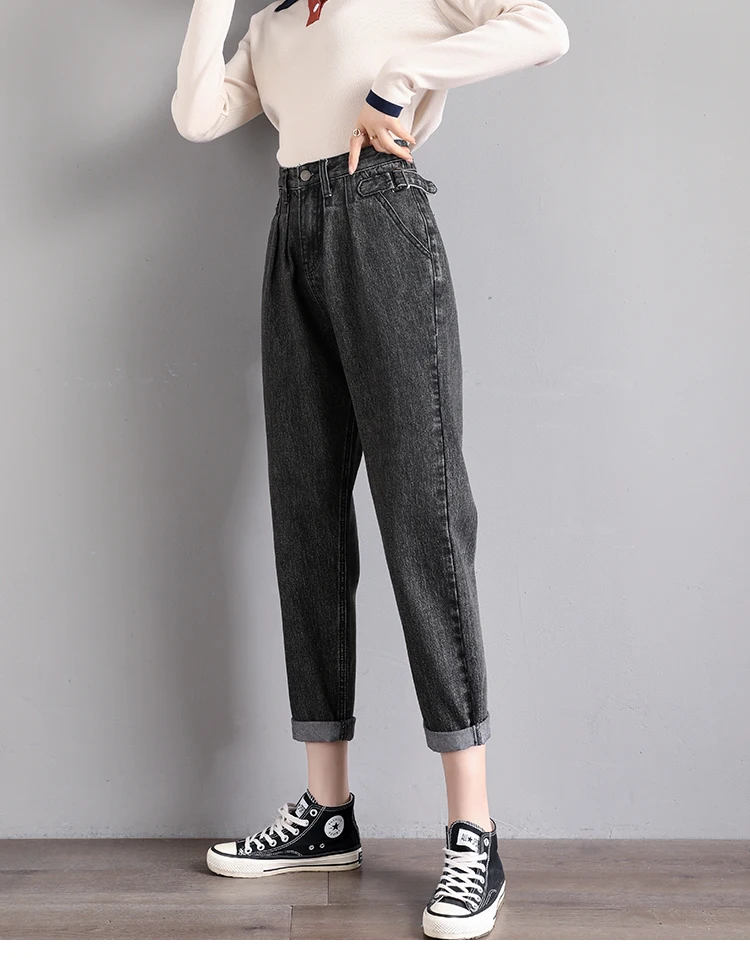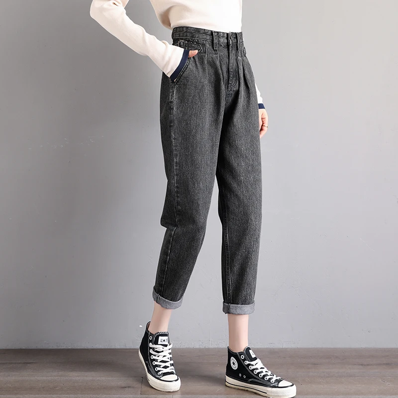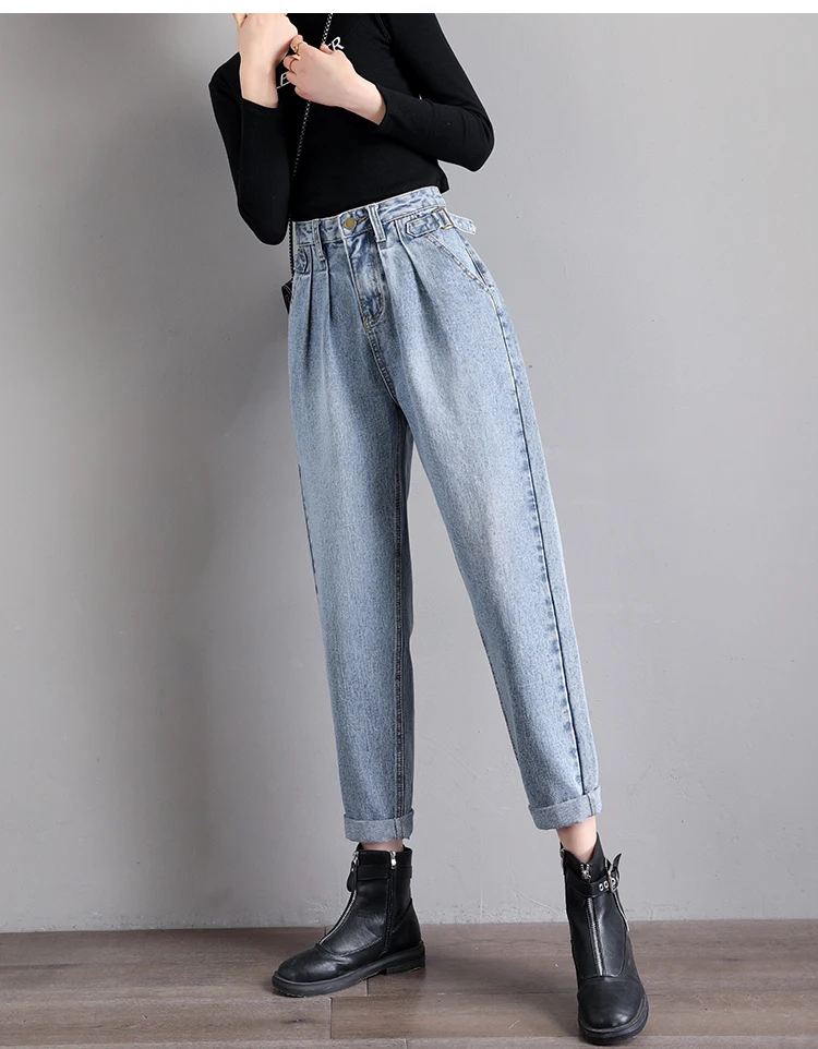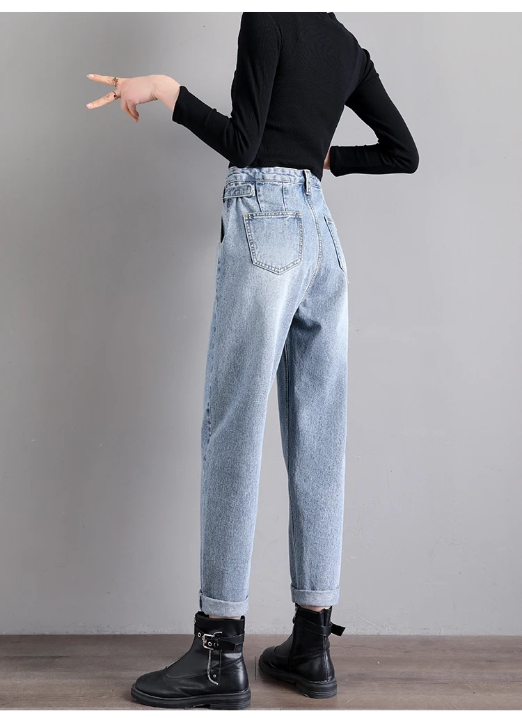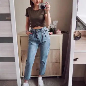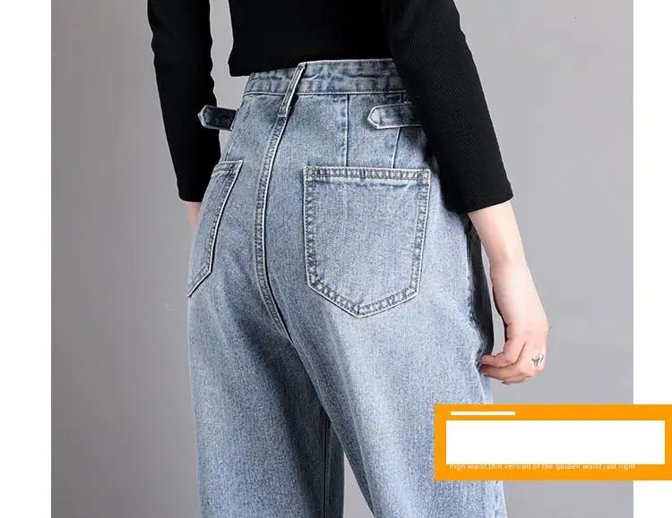 קוריאני אופנה אישה ג 'ינס רופף מזדמן ישר רגל Highwaist ג' ינס נקבה Streetwear אביב ובסתיו מכנסיים
