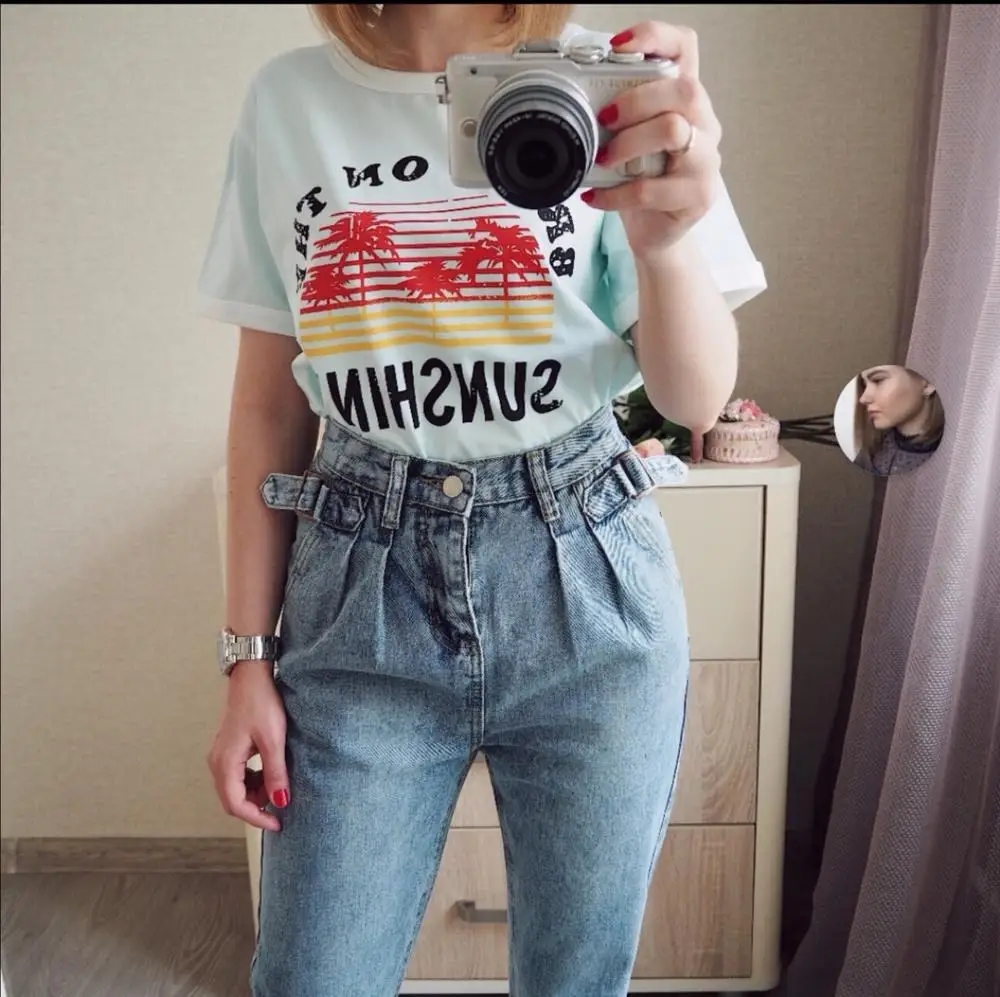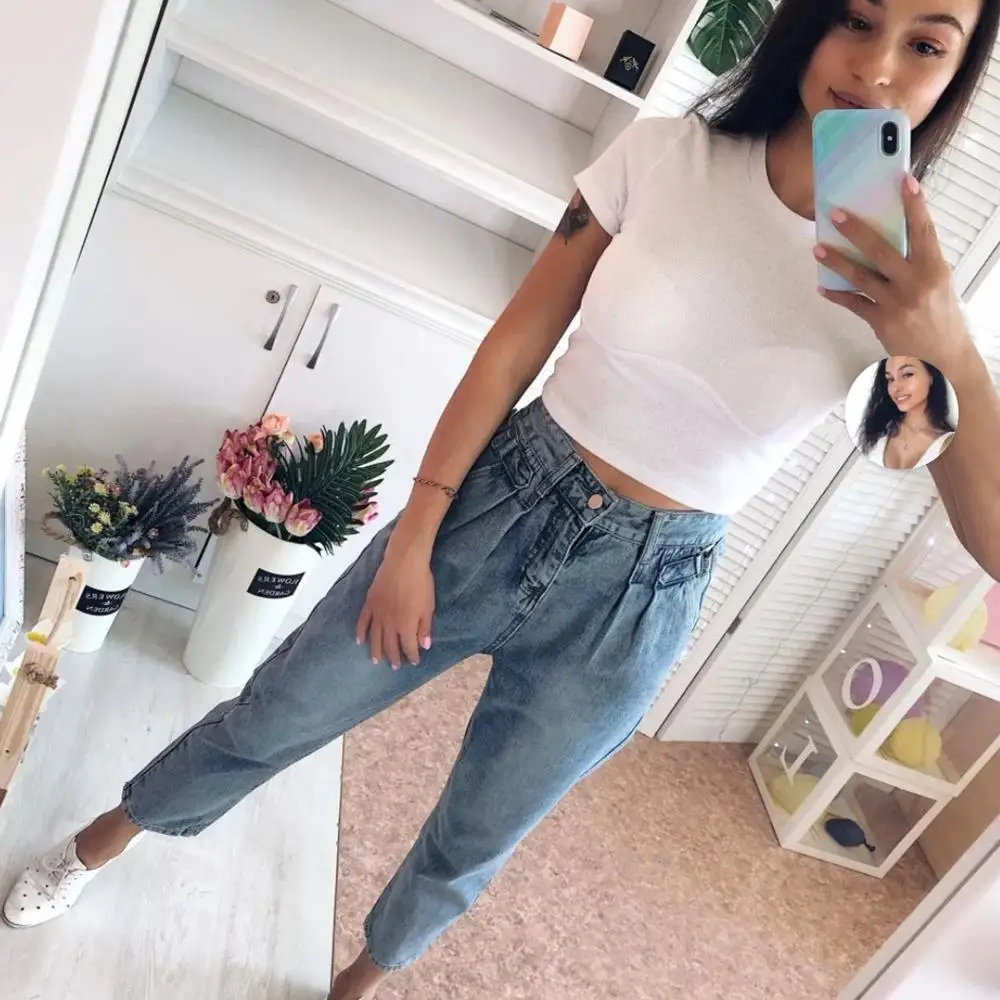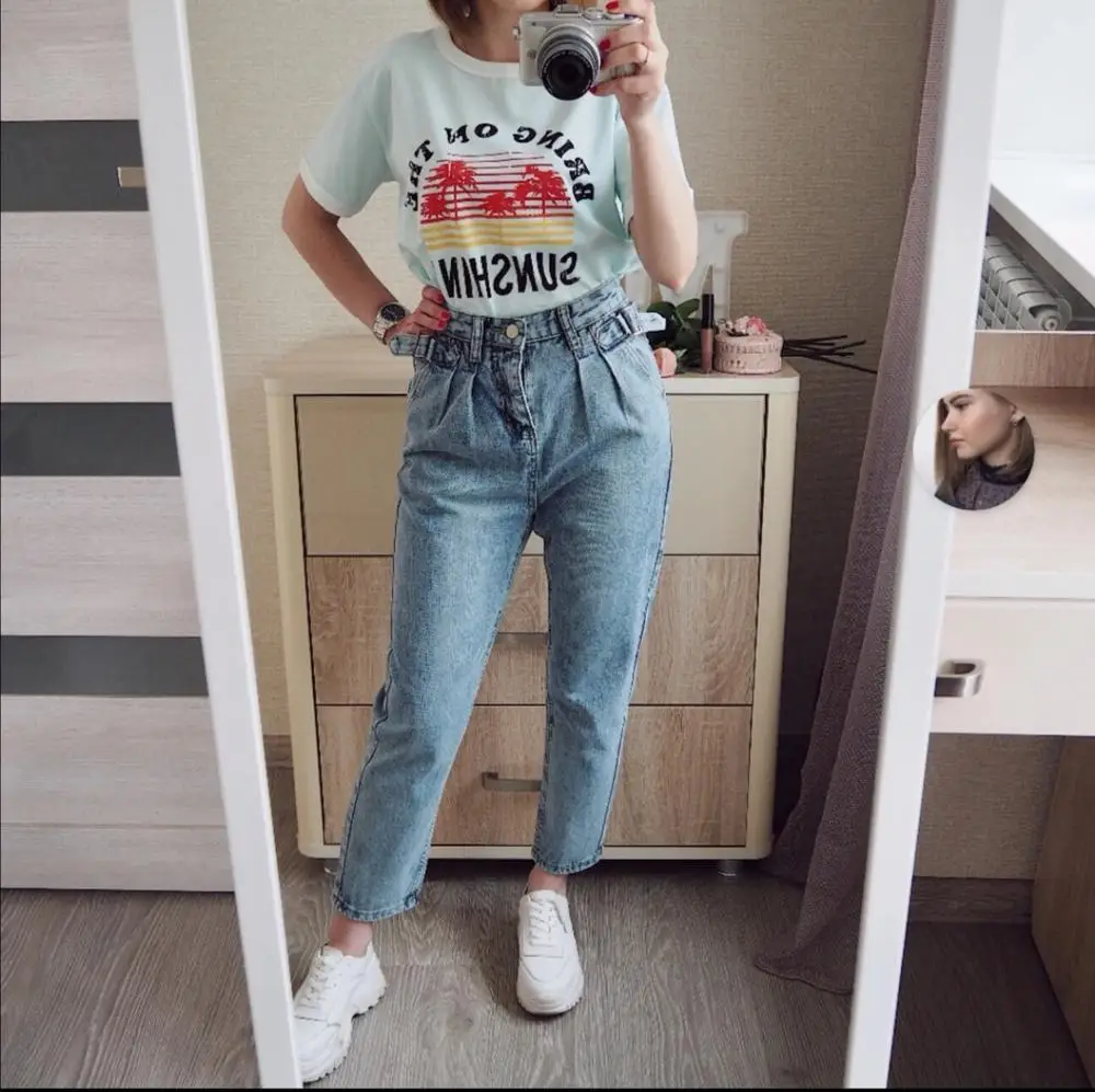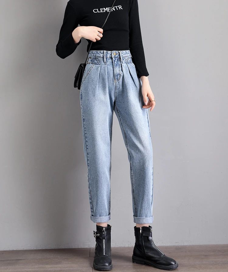 קוריאני אופנה אישה ג 'ינס רופף מזדמן ישר רגל Highwaist ג' ינס נקבה Streetwear אביב ובסתיו מכנסיים