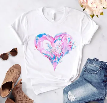לב פרח הדפסת גבירותיי חולצה גבירותיי מקרית בסיס O-צווארון לבן חולצה קצר שרוול גבירותיי חולצה אהבה גרפי הדפסה