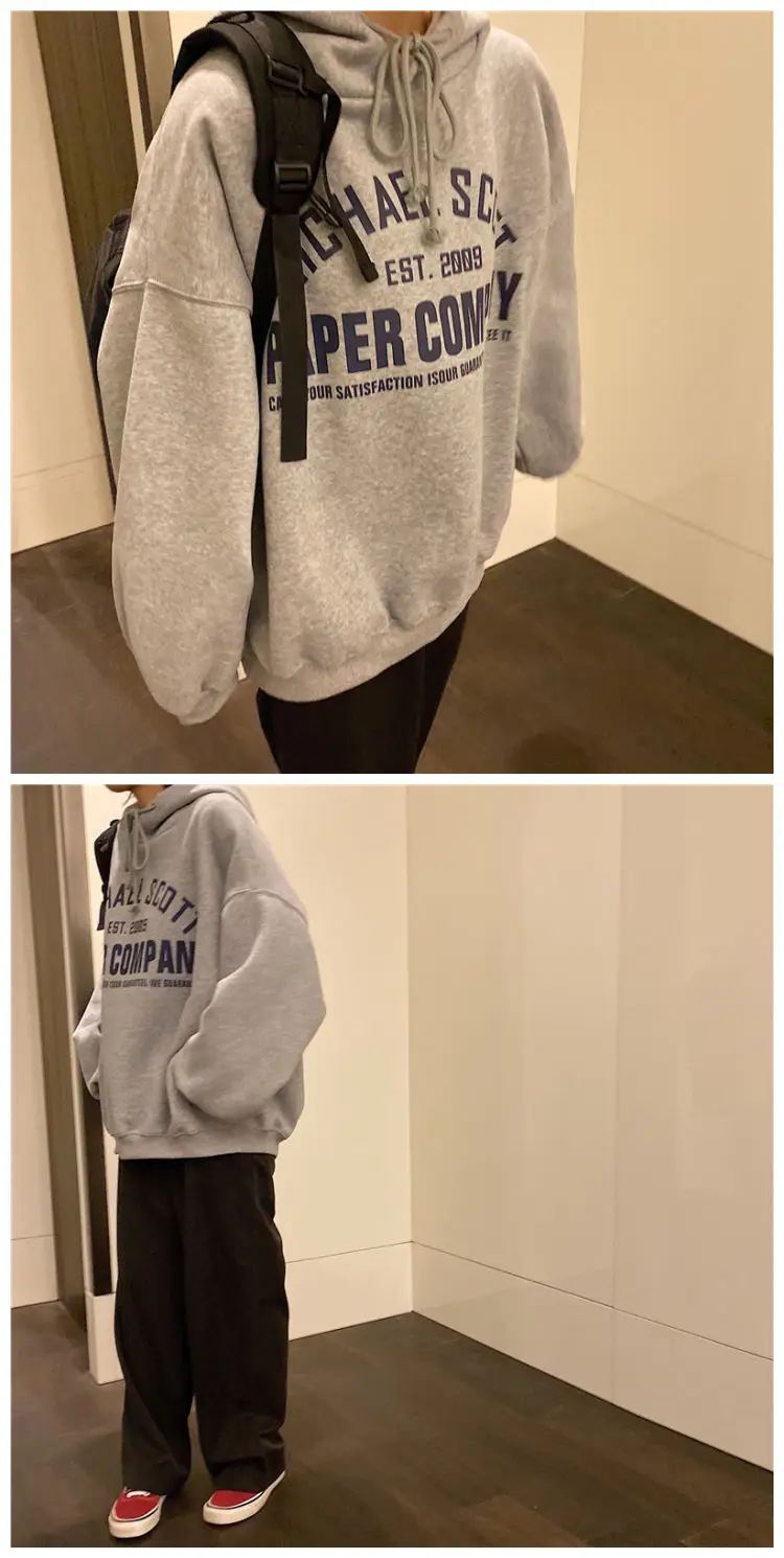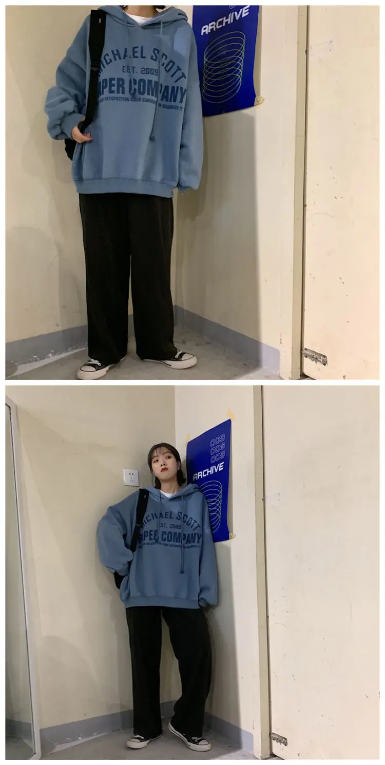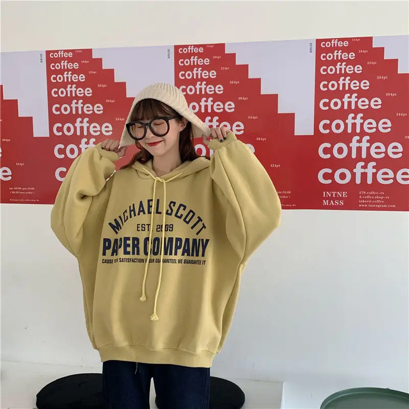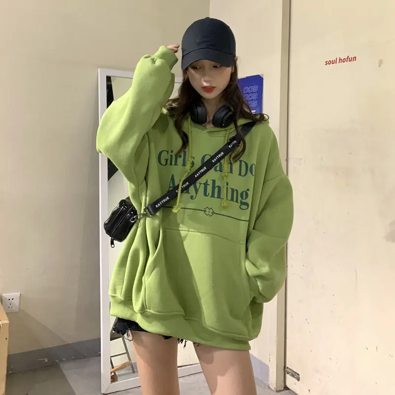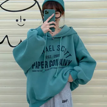 נים נשים ברדס בתוספת קטיפה עבה שיק Loose Oversize Streetwear אופנתי פנאי קוריאני סגנון Harajuku חדש פשוט Ulzzang