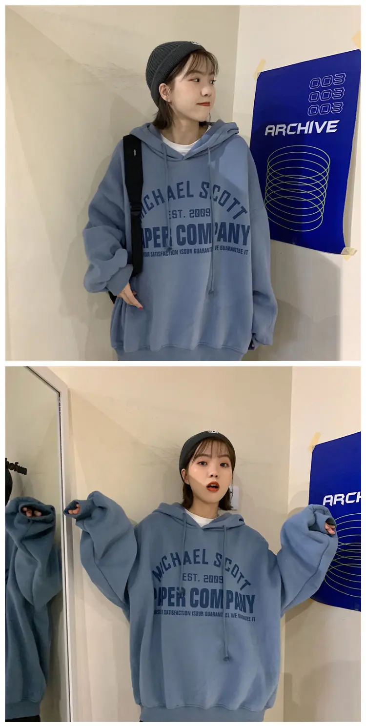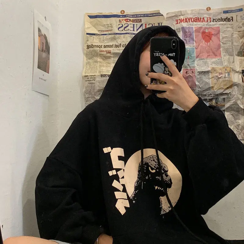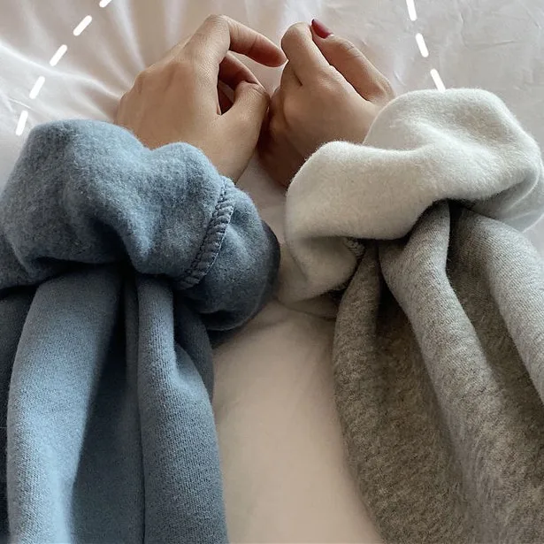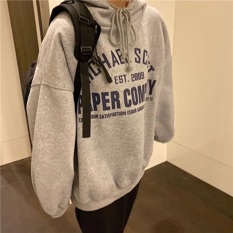 נים נשים ברדס בתוספת קטיפה עבה שיק Loose Oversize Streetwear אופנתי פנאי קוריאני סגנון Harajuku חדש פשוט Ulzzang