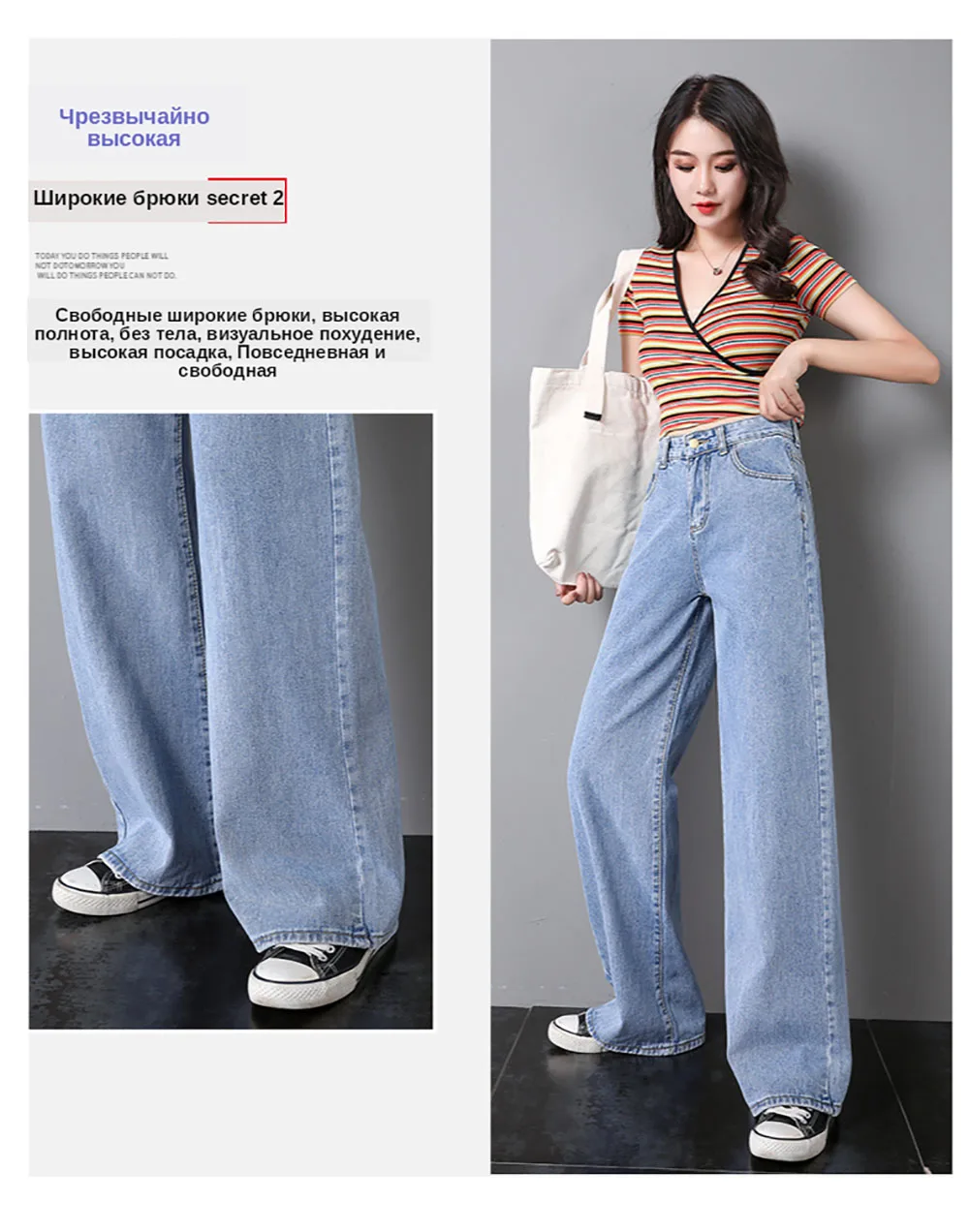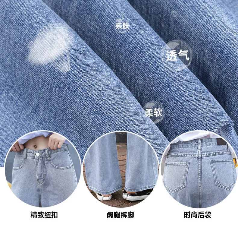 נשים ג 'ינס מכנסיים פנאי Loose גבוה מותן בציר רחב רגל ג' ינס נשים ז 'אן קוריאני סגנון כל-להתאים פשוט מלא-אורך
