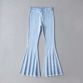חדש 2017 חדשה באיכות גבוהה אופנה רטרו Hippe נשים רחב רגל ארוך גבוהה מותן תחתון שטף ג 'ינס מכנסיים מכנסיים כחול שחור