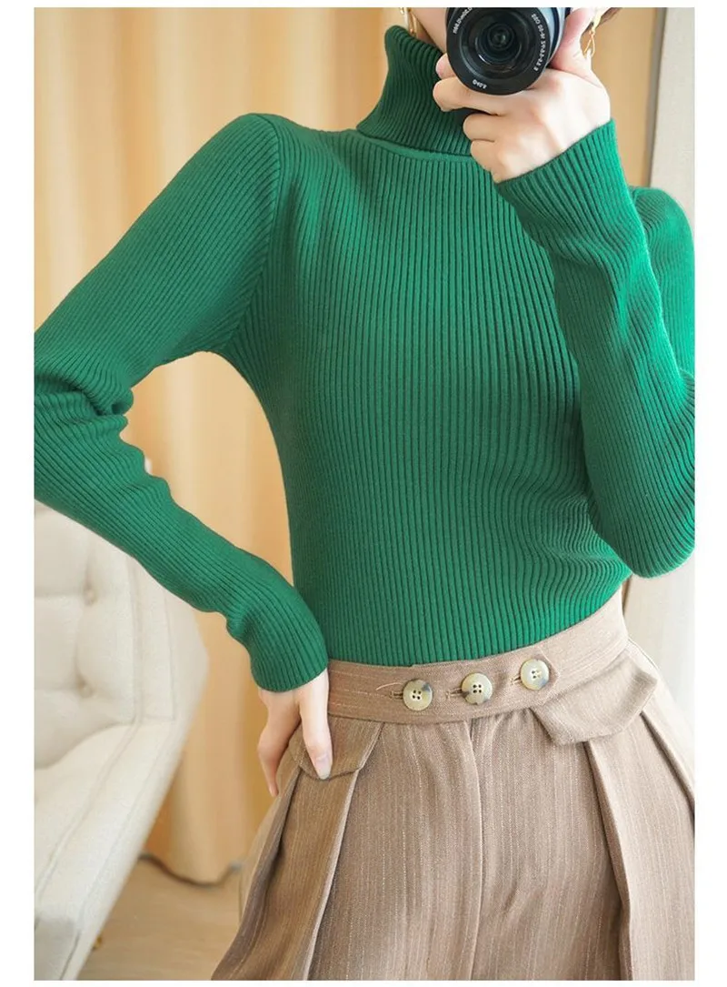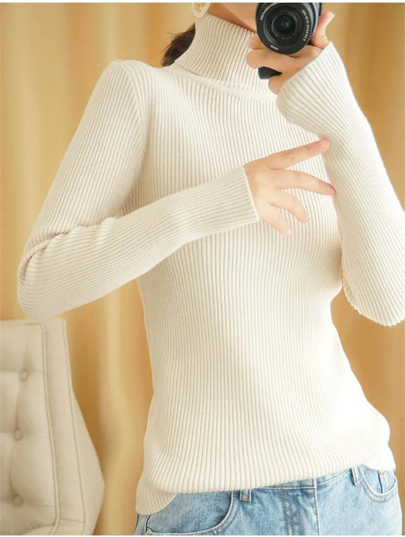 Bonjean סתיו חורף סרוג Jumper חולצות גולף סוודרי סוודרים מקרית נשים חולצה ארוך שרוול הדוק סוודר בנות