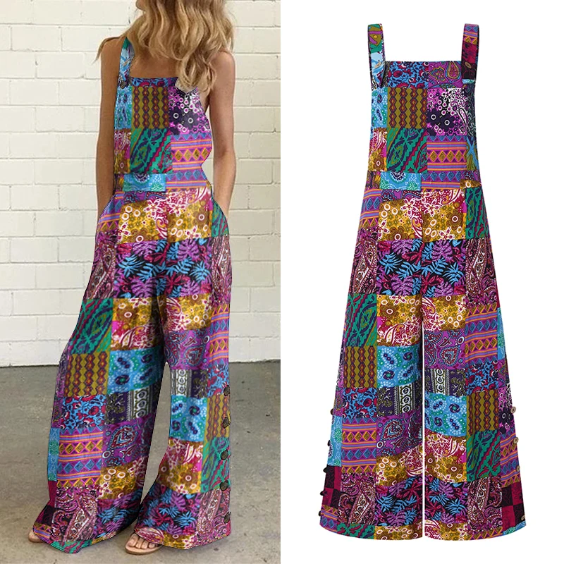 חבילה כללה: 1 סרבל חומר: 100% כותנה שרוול: ללא שרוולים כיסים: כן גודל: S,M,L,XL,2XL,3XL,4XL,5XL דפוס: מוצק אורך: אורך מלא תכונות: רחב רגל סגנון: פנאי עונה: קיץ אירוע: מסיבה, חג, Streetwear