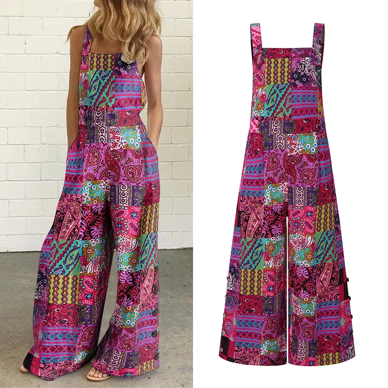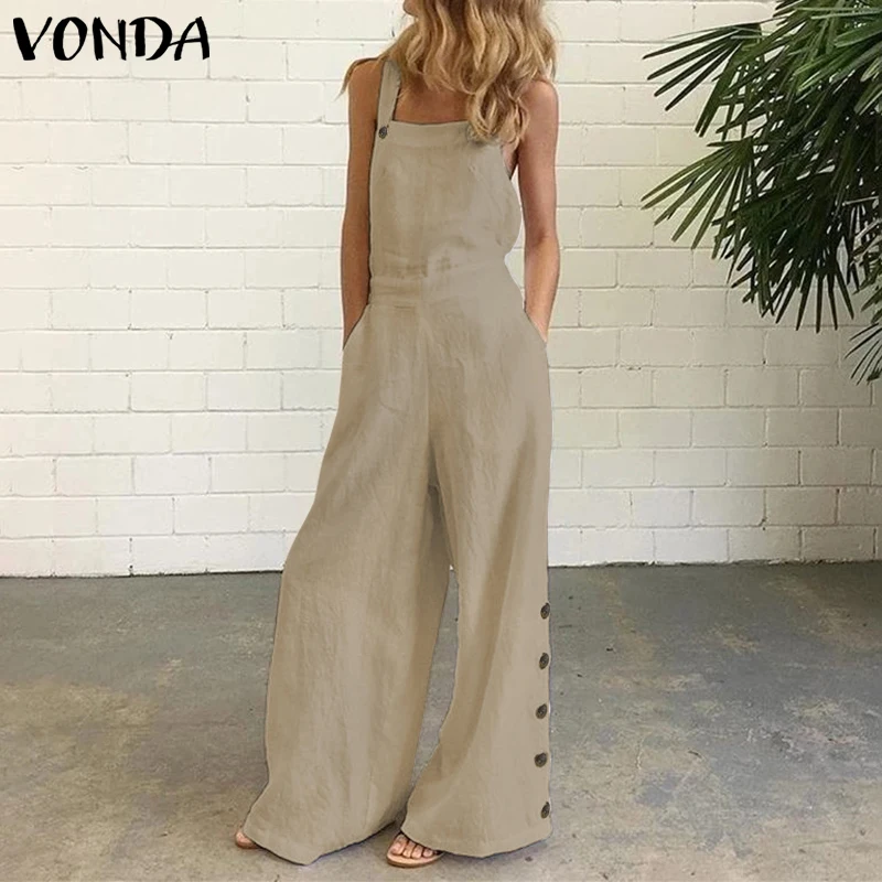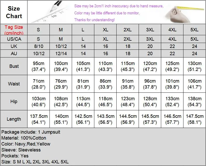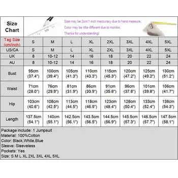 חבילה כללה: 1 סרבל חומר: 100% כותנה שרוול: ללא שרוולים כיסים: כן גודל: S,M,L,XL,2XL,3XL,4XL,5XL דפוס: מוצק אורך: אורך מלא תכונות: רחב רגל סגנון: פנאי עונה: קיץ אירוע: מסיבה, חג, Streetwear