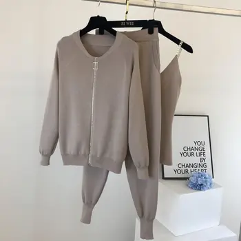 JXMYY סוודר סט נשים אימונית אביב סתיו סרוג חליפות 2 חתיכה סט חם גולף סוודר סוודרי רחב רגליים מכנסיים