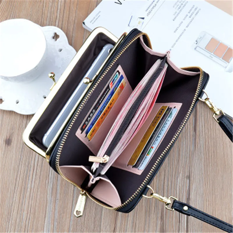 נשים תיק גדול מסך טלפון תיק נשים של ארנק ארוך רוכסן כתף תיק אופנה שליח תיק מטבע ארנק עור Crossbody ארנק