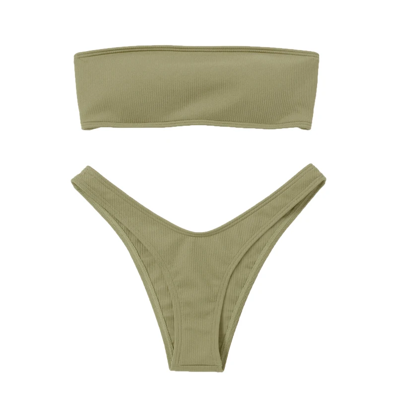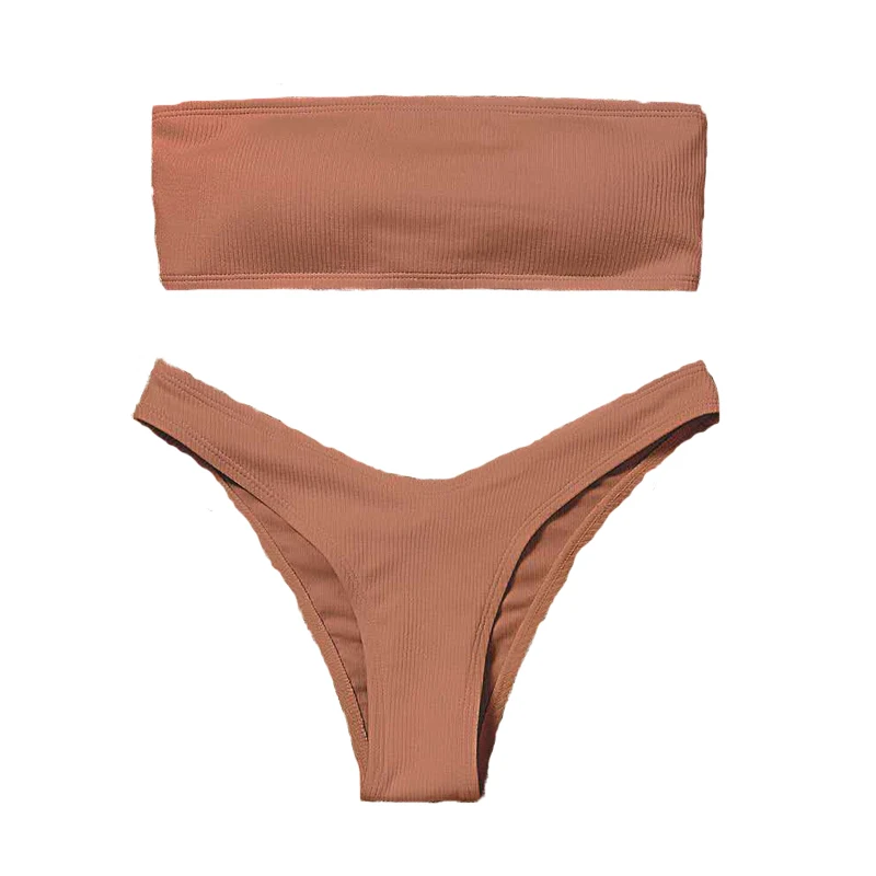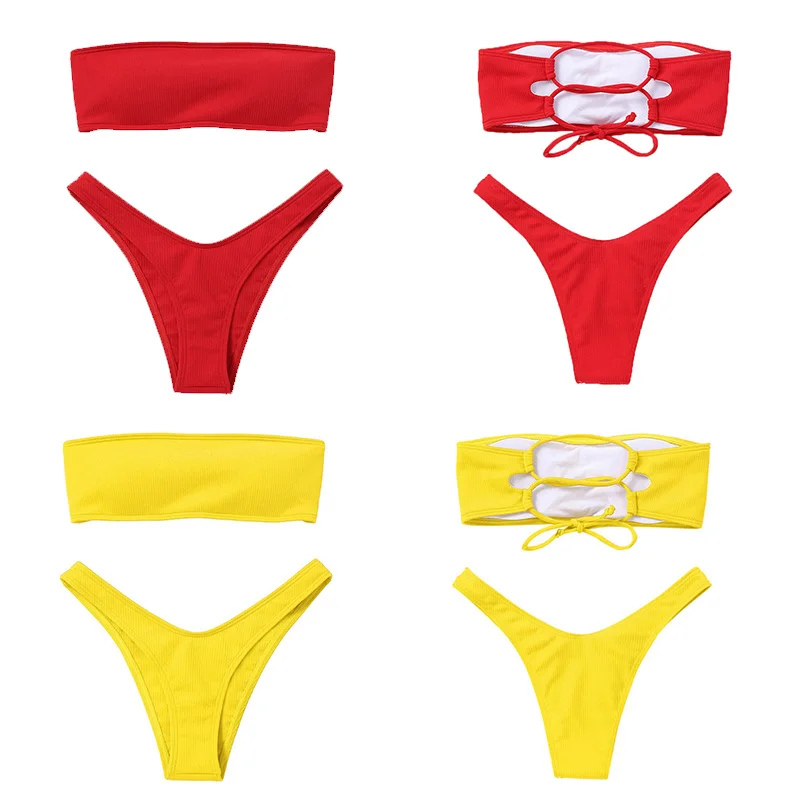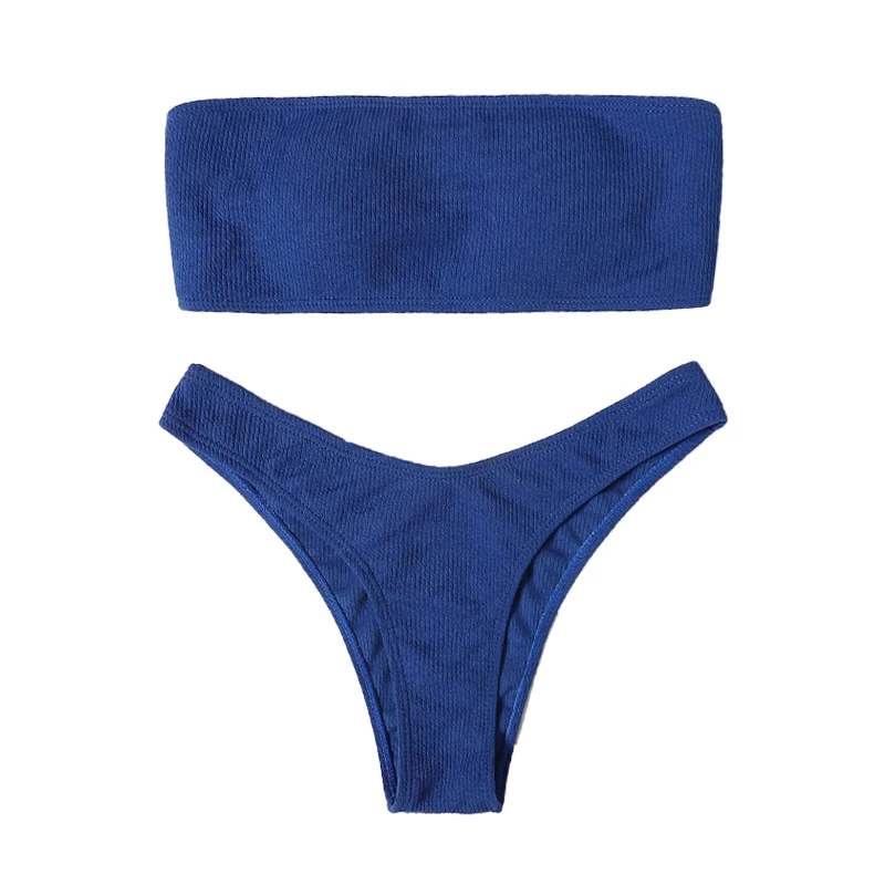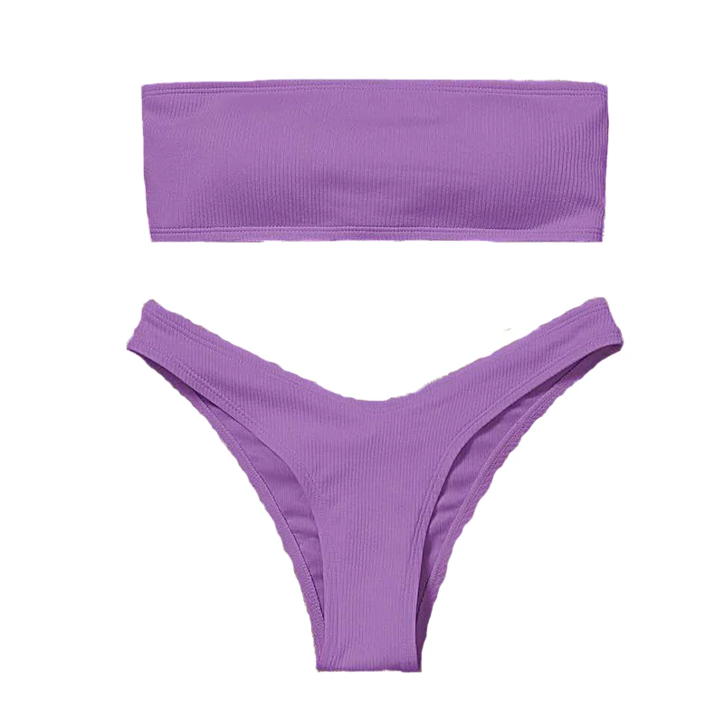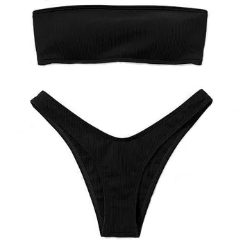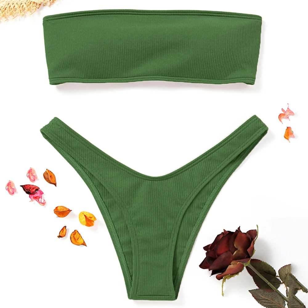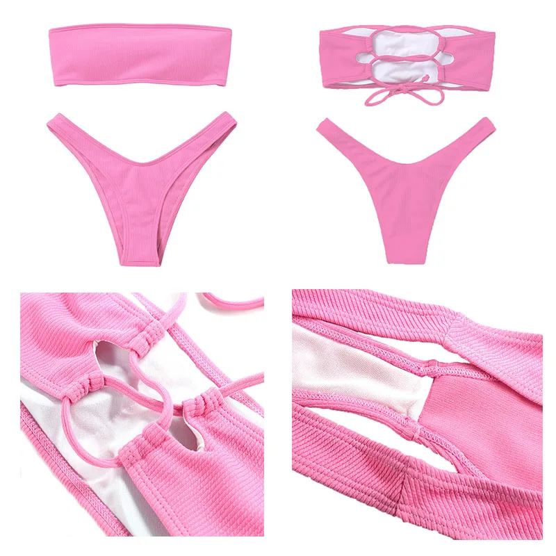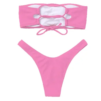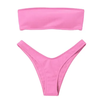 סטרפלס ביקיני 2020 אישה 2 חתיכה בגד ים מוצק בגדי ים סקסי ביקיני סט נשי בגדי ים גבוה מותן Push up Biquini ורוד כחול