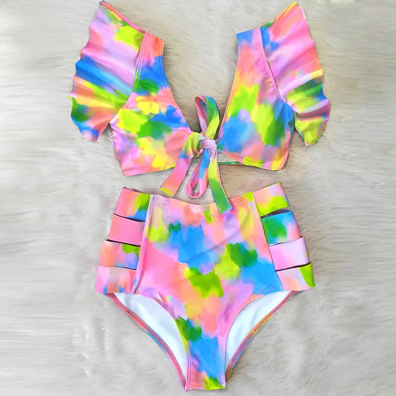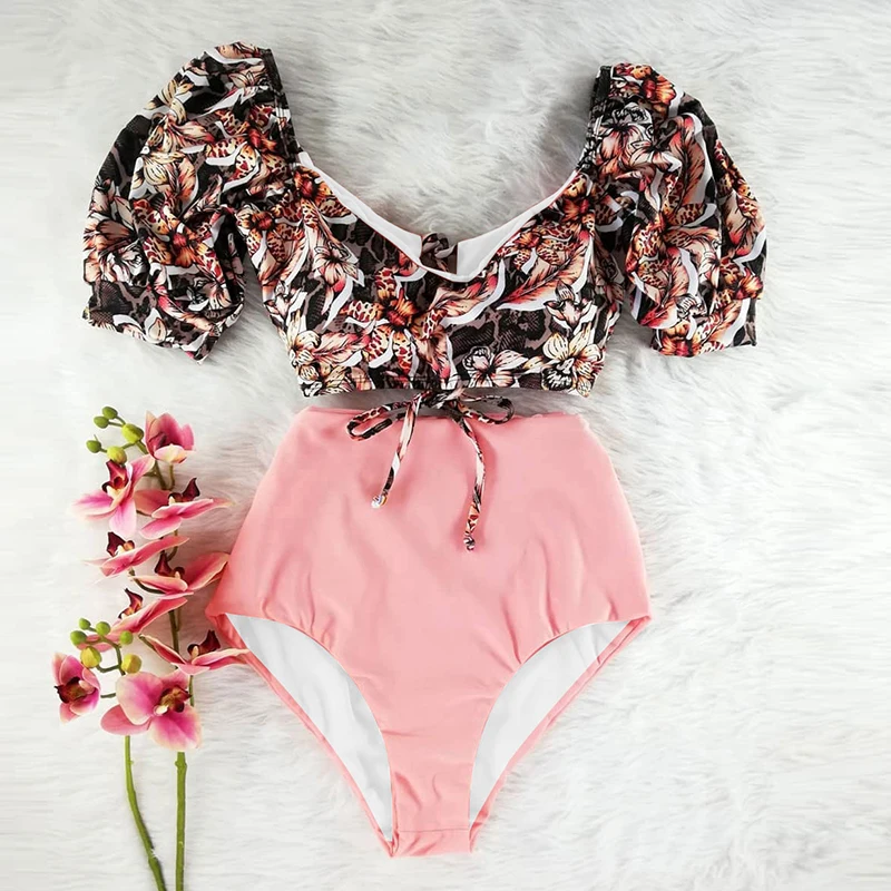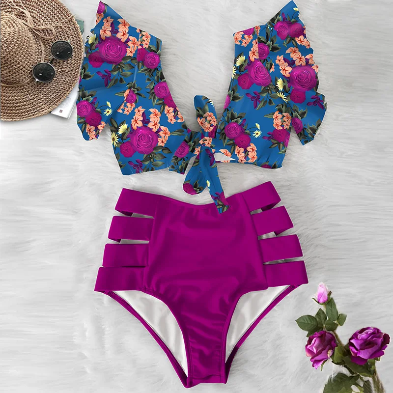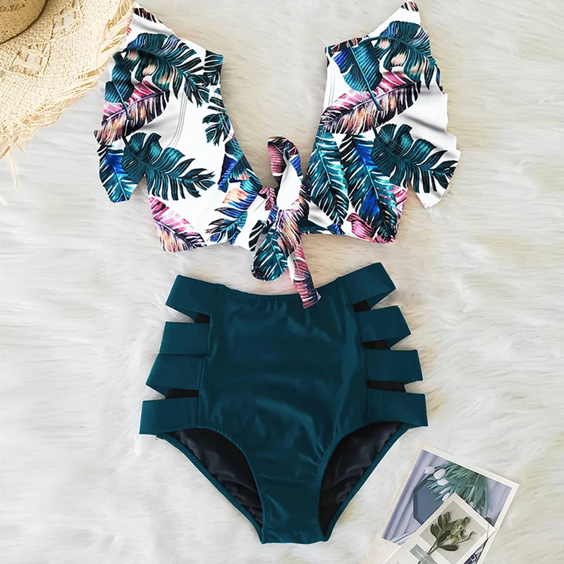 סקסי ביקיני 2020 חדש כפול כתף לפרוע ביקיני סט גבוה מותן בגדי ים נשים בגד ים צווארון V בגד ללבוש לשחות