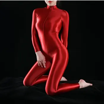 סקסי נשים מבריק מלא בגד גוף שמן Gloosy בעיצוב סקסי חוטיני בגד גוף בגד גוף Sheer לראות דרך סקסי הדוק צבעים בוהקים בתוספת גודל 38