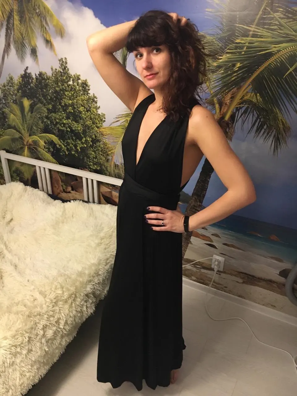 פשוט מושלם! חומר נהדר, את שמלת באמת נראה יוקרה. בדרך כלל משמש ללא חזייה. עם שלי 158cm ו 63kg, M מתאים בצורה מושלמת.