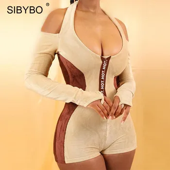 Kliou 2019 נשים כושר Playsuits שרוולים גולף רוכסן לטוס מכתב הדפסת טלאי בגד גוף ספורט סקיני תלבושות