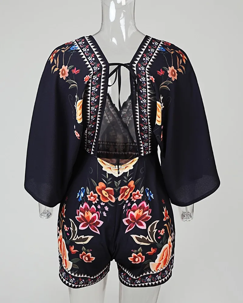נשים OL מוצק Loose Palysuits קיץ שיפון Falbala שרוולים גבירותיי גבוהה רחוב סרבל סרבלי