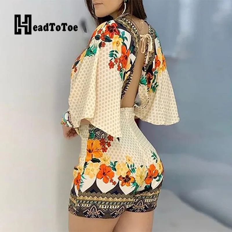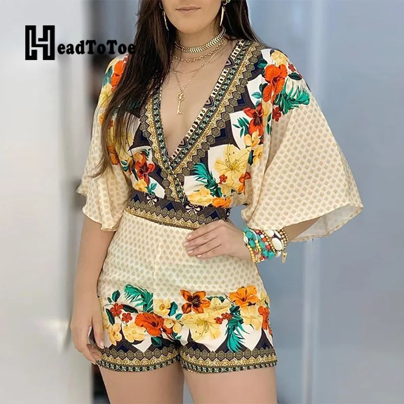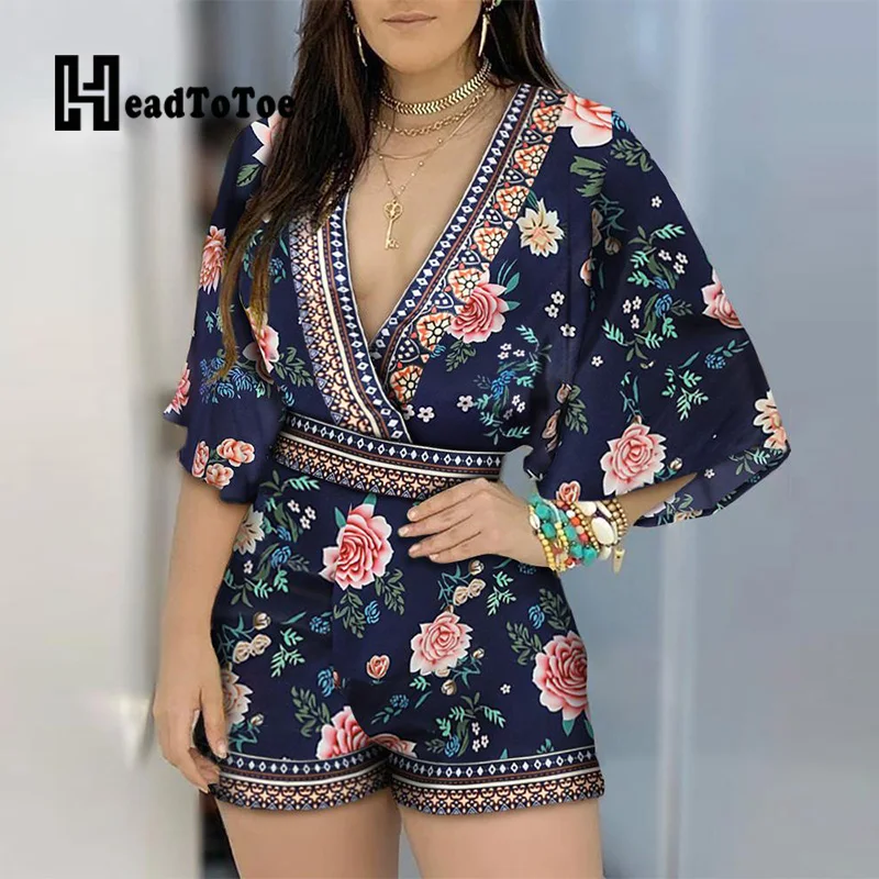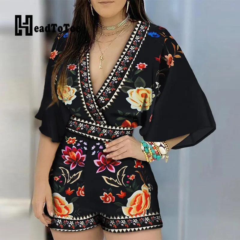 נשים OL מוצק Loose Palysuits קיץ שיפון Falbala שרוולים גבירותיי גבוהה רחוב סרבל סרבלי