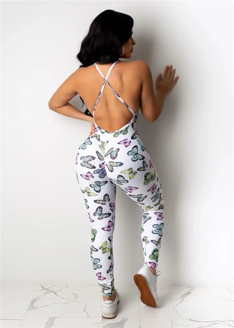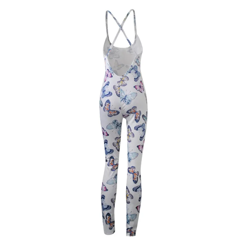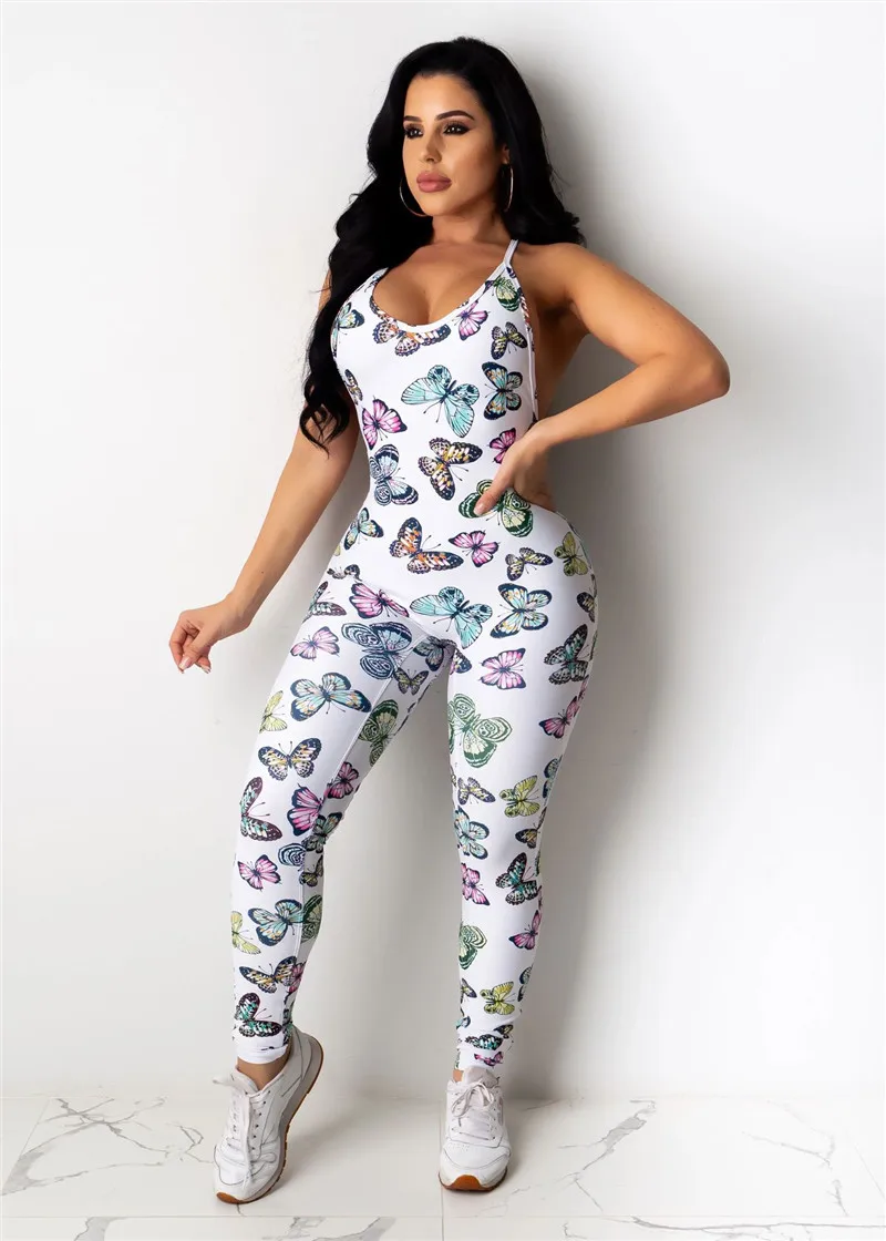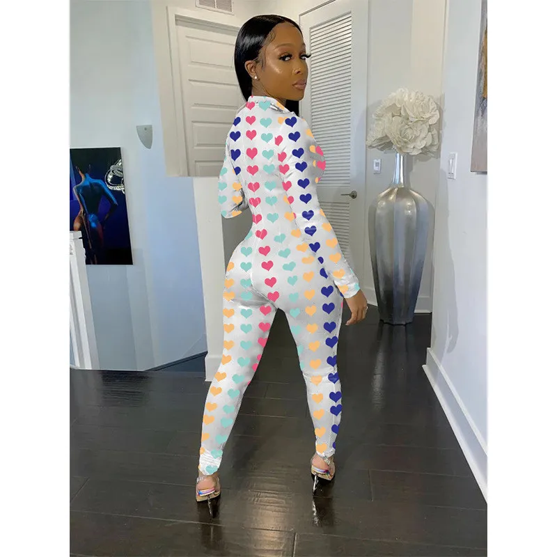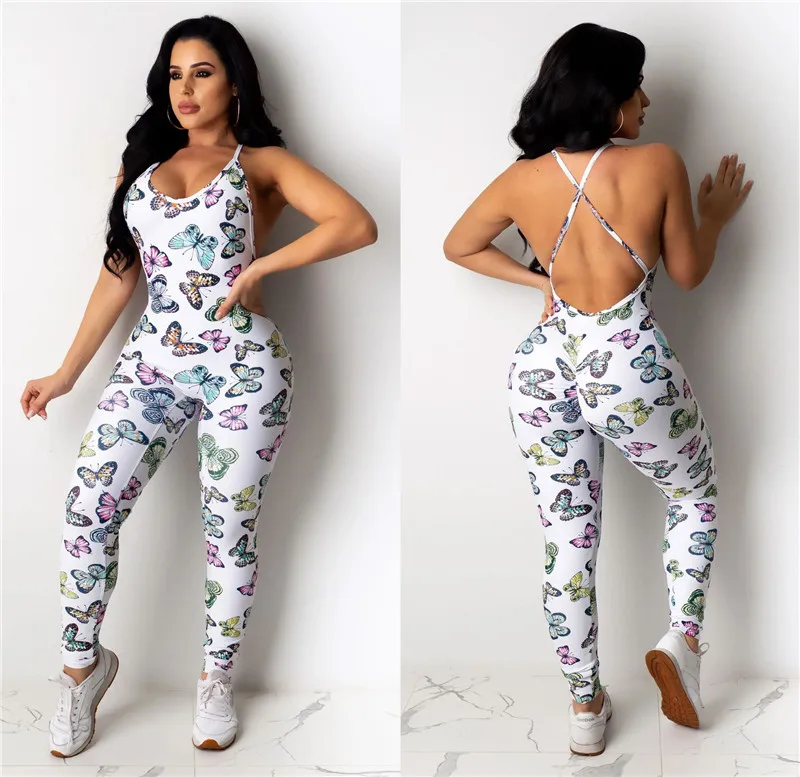 פרפר הדפסת סקסי ארוך שרוול Bodycon סרבל Rompers נשים 2020 מול רוכסן Clubwear תלבושות חתיכה אחת Rompers פעיל ללבוש