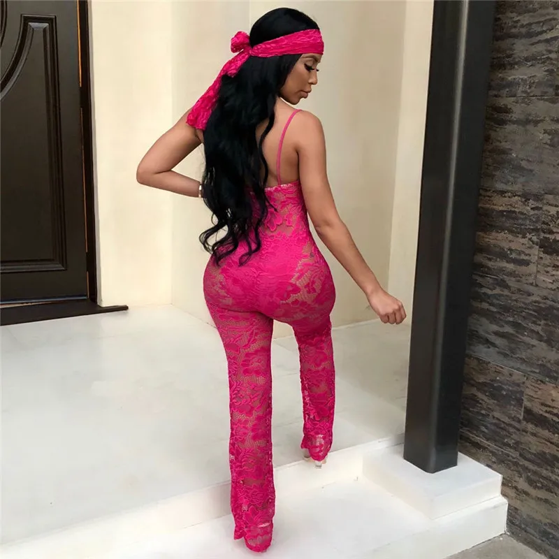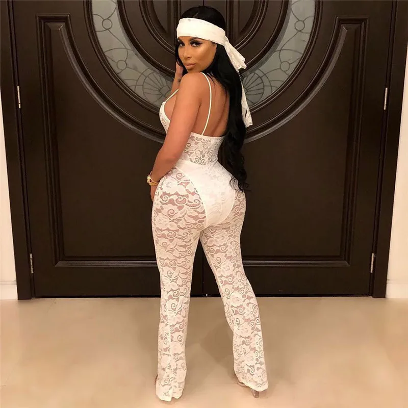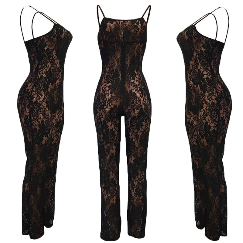 תחרה סרבל 2019 חדש אופנה Rompers נשים סרבלי Clubwear Playsuit הולו מפלגה מתוך שיפון Outweaer בגדים