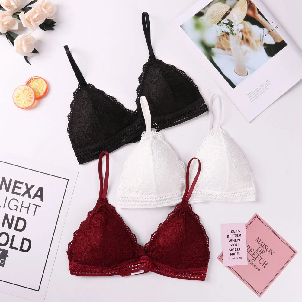 נשים תחרה חזייה לא פלדת טבעת יופי חזרה עטוף חזה נוח דייזי חזייה למתוח משולש כוס מרופד תחתוני 1/2Pcs