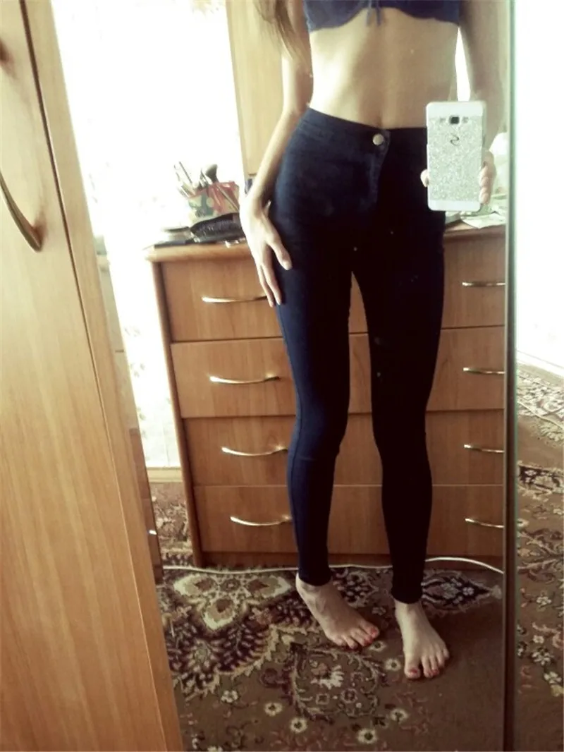 2015 חדש אופנה ג 'ינס נשים מכנסי עיפרון גבוה מותן ג' ינס סקסי Slim אלסטיים סקיני מכנסיים מכנסיים Fit ליידי ג 'ינס בתוספת גודל