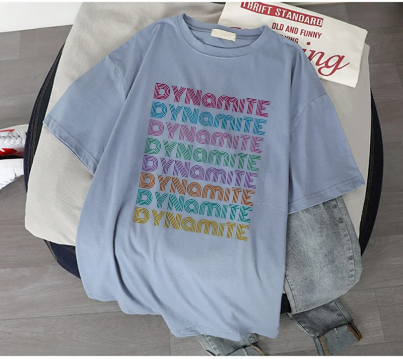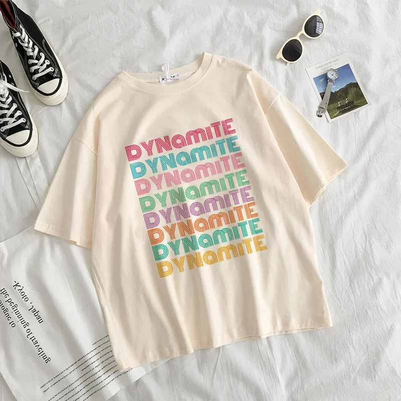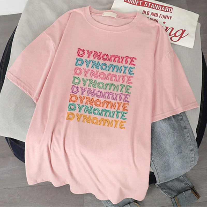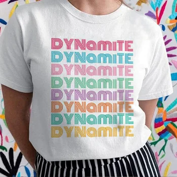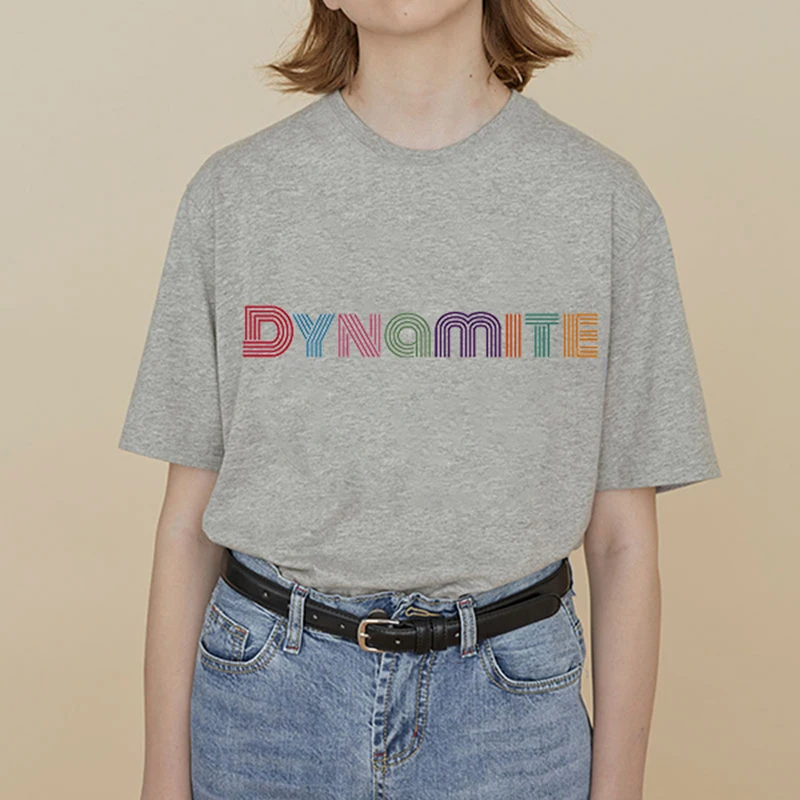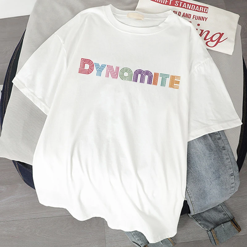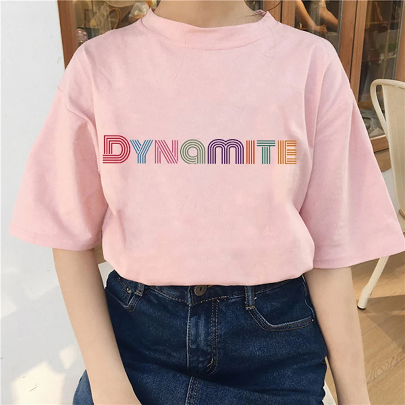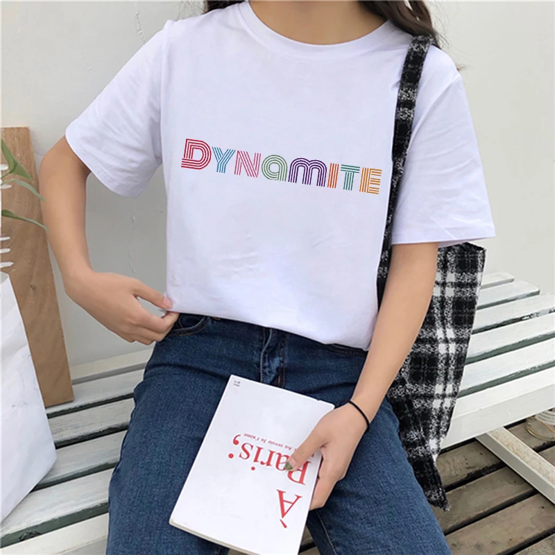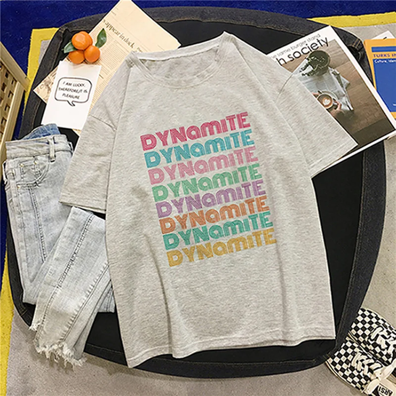 2020 חדש אלבום דינמיט הדפסת חולצה Kpop קוריאני סגנון קצר שרוול חמוד קוריאני מזדמן היפ הופ קצר שרוול למעלה