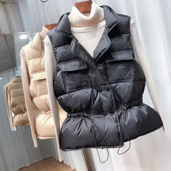 PinkyIsBlack צווארון עומד נשים חורף וסטים 2020 חדש קצר אפוד כותנה מרופדת שרוולים נשי חורף חזיית אפוד