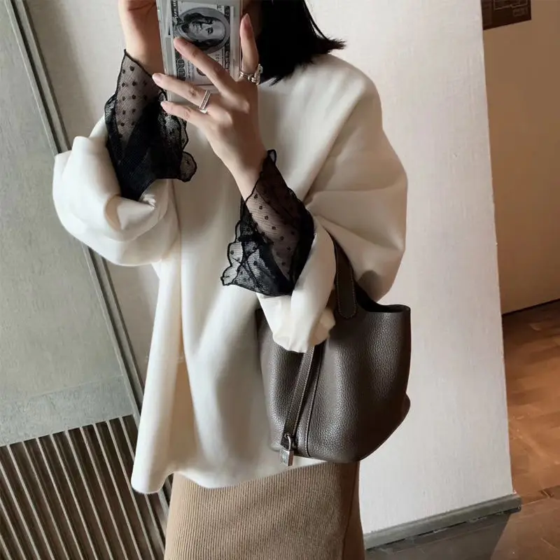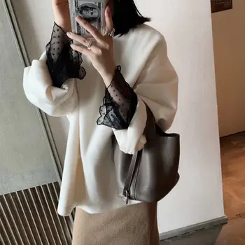 Deeptown Harajuku מלאך הדפסת נשים חולצה אלגנטית בציר נשים סתיו 2020 שרוול פנס נשי בגדי רופף BF חולצה