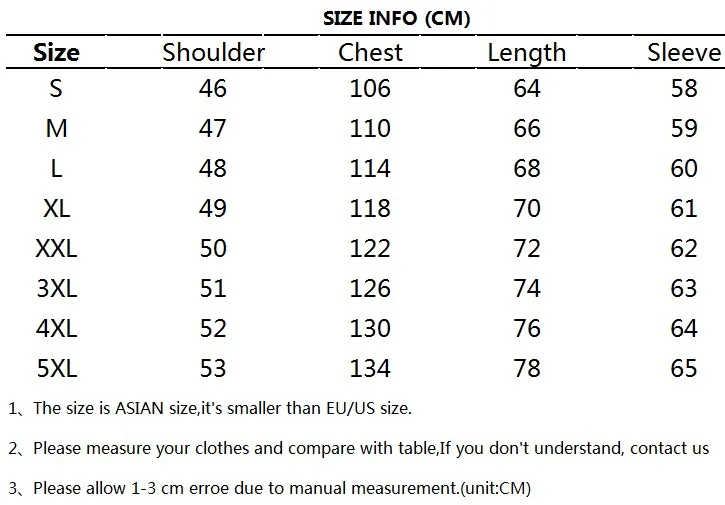 כל הקונה הערה זה, זה מעיל הוא רופף sytle, זה הוא גדול יותר אז רגיל. אם אתה רוצה דק, נא לבחור מידה אחת קטן יותר, או שאתה יכול למדוד בגדי שלך ואז לבדוק שלנו גודל שולחן, לבחור את הגודל הנכון