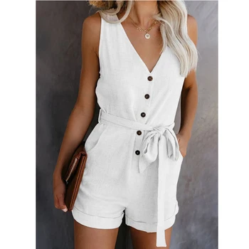 נשים OL מוצק Loose Palysuits קיץ שיפון Falbala שרוולים גבירותיי גבוהה רחוב סרבל סרבלי