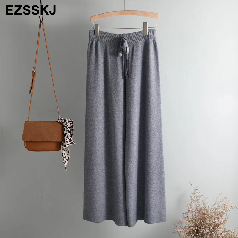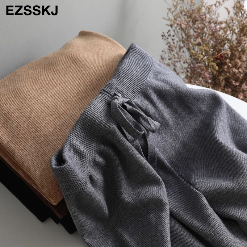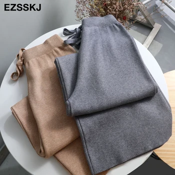 2020 סתיו החורף חדש עבה מזדמן ישר מכנסיים נשים נקבה שרוך רופף סרוג רחב רגל מכנסיים מזדמנים מכנסיים