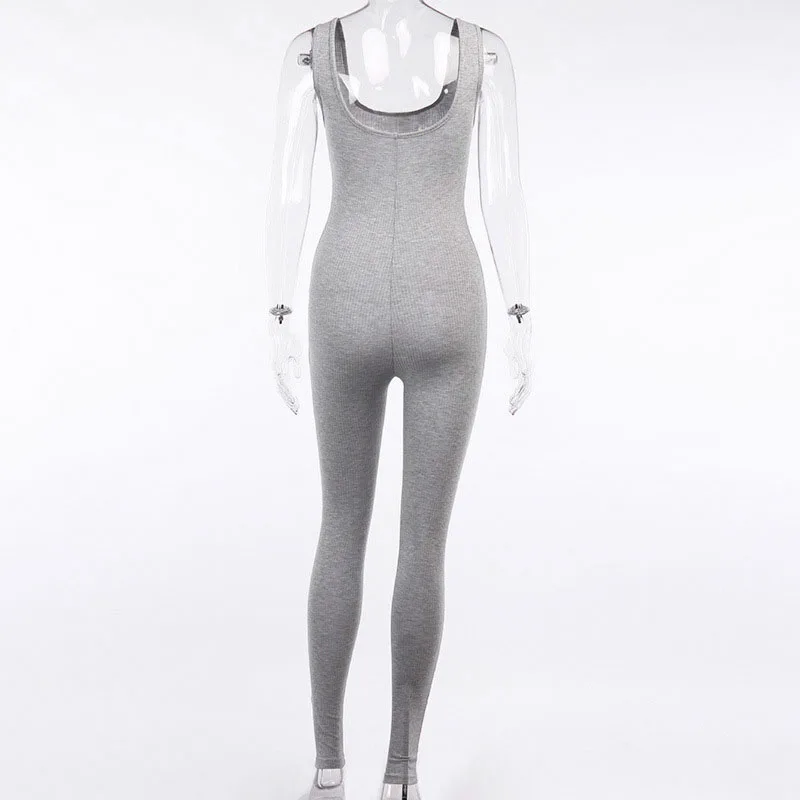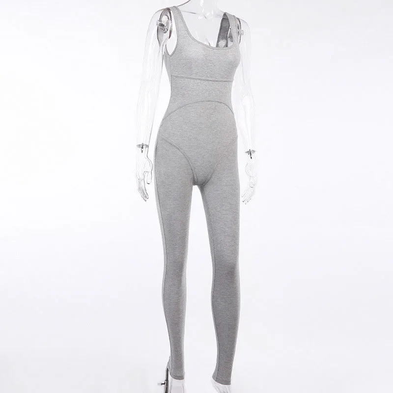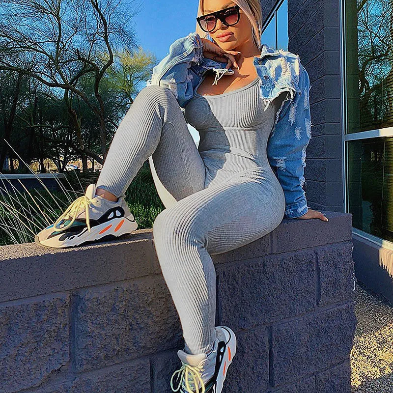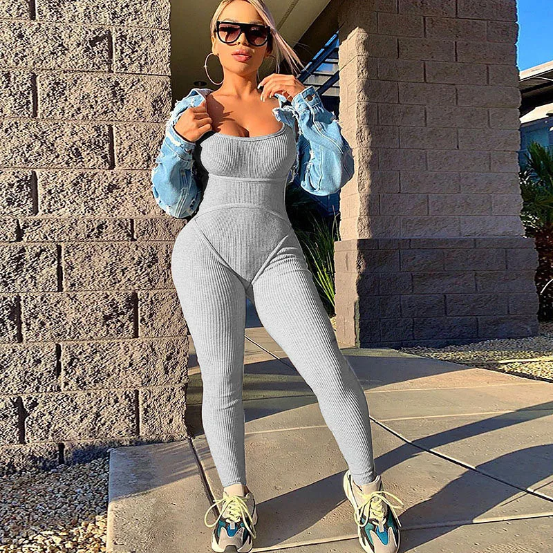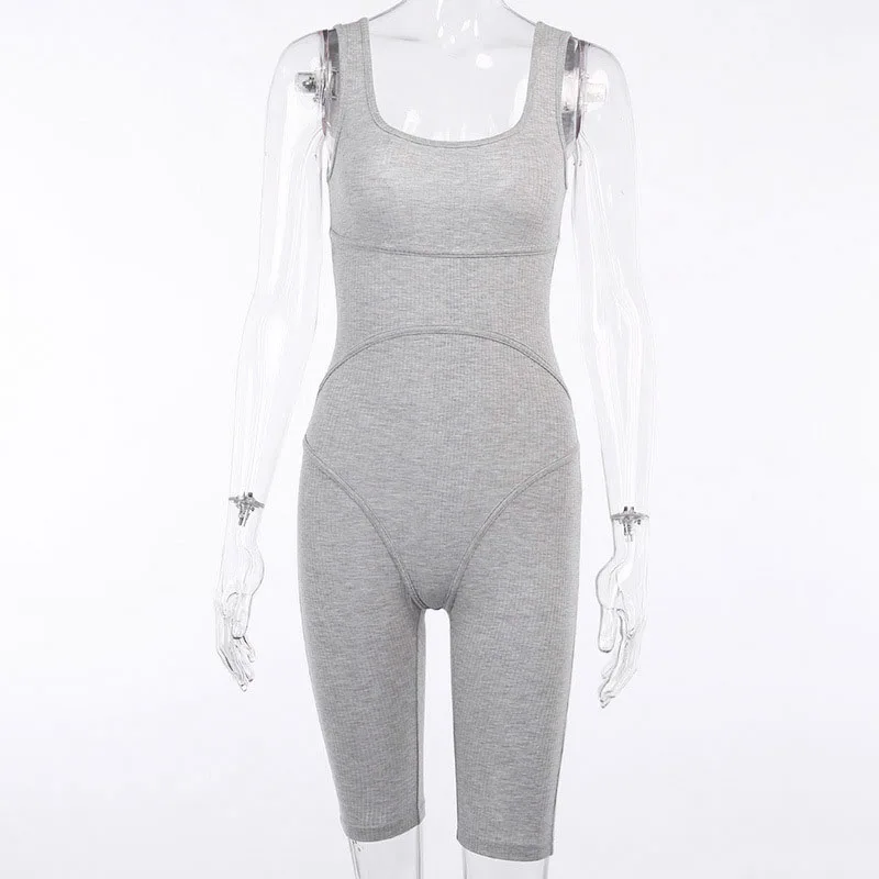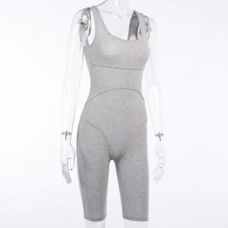 2020 קיץ נשים סקסי סרבל Streetwear סקיני Bodycon שרוולים ספורט מוצק סרוג Jumsuits Romper Playsuit לנשים